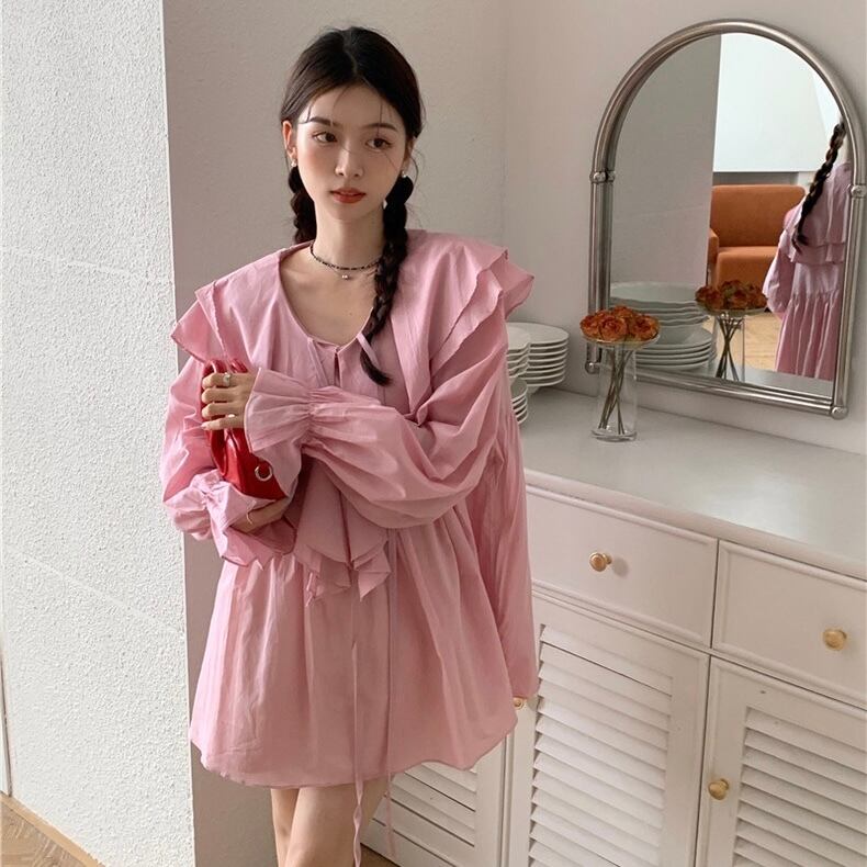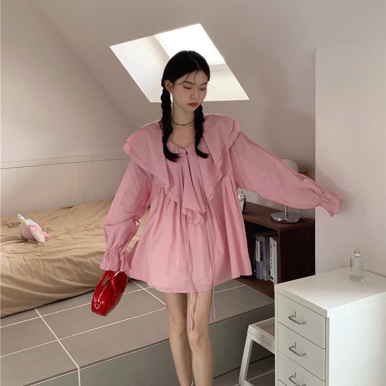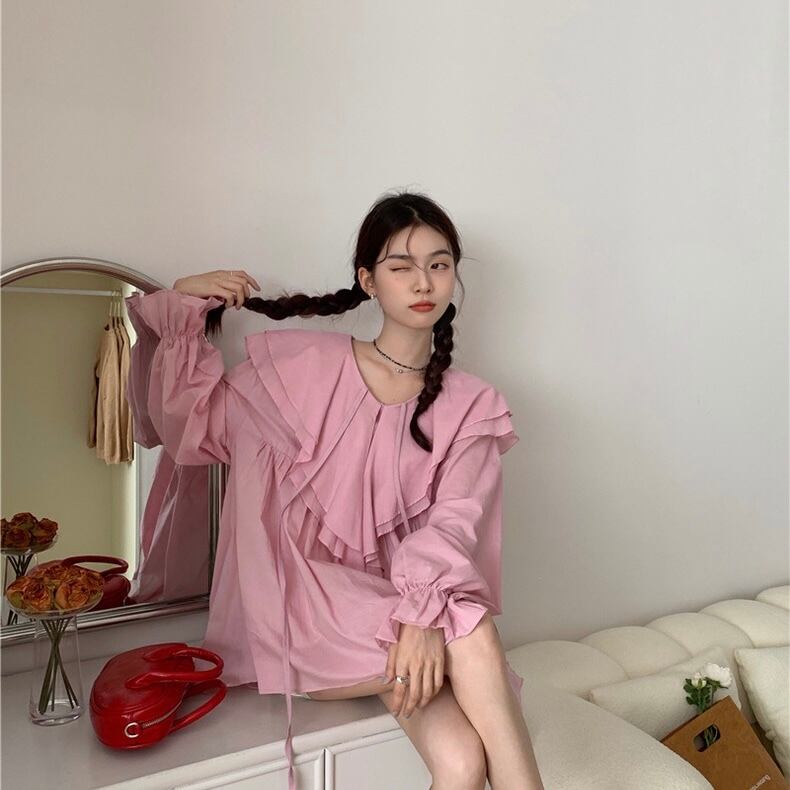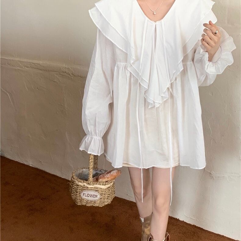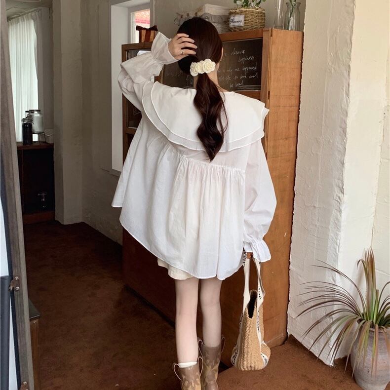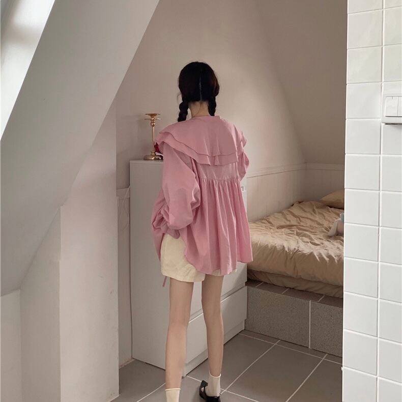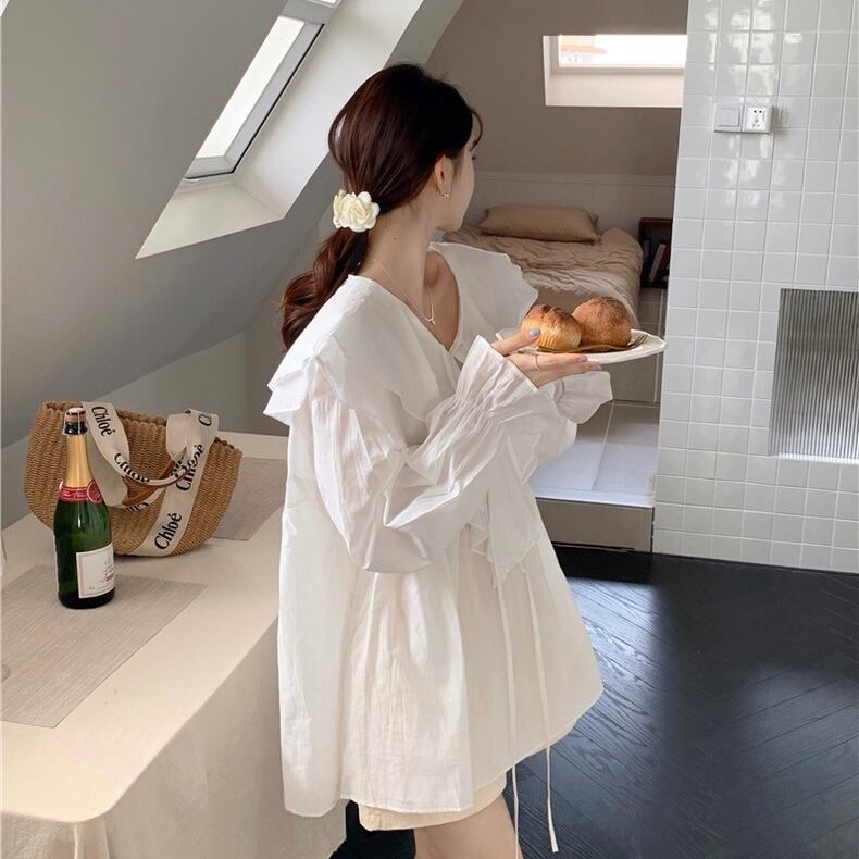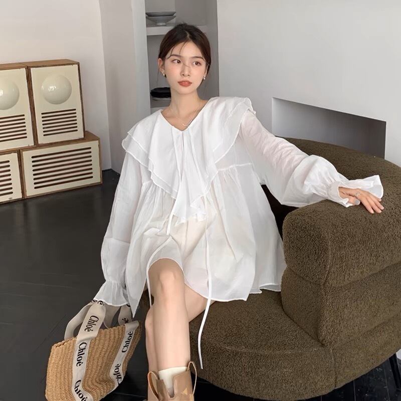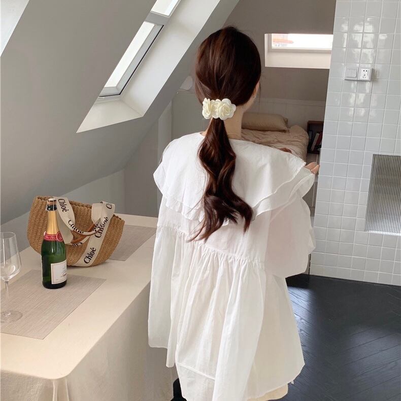 【tops】ラッフルフリルシャツブラウス2色 XA3007