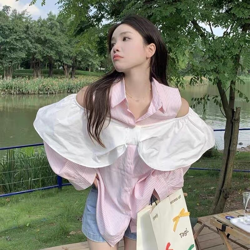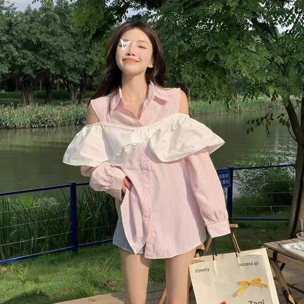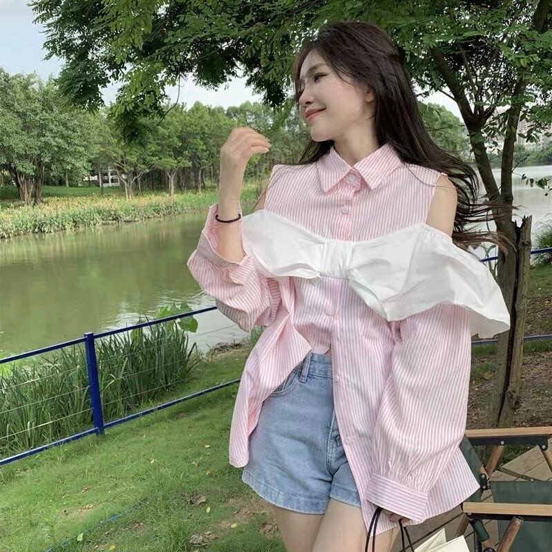 【tops】肩見せ襟付きシャツ XA3008
