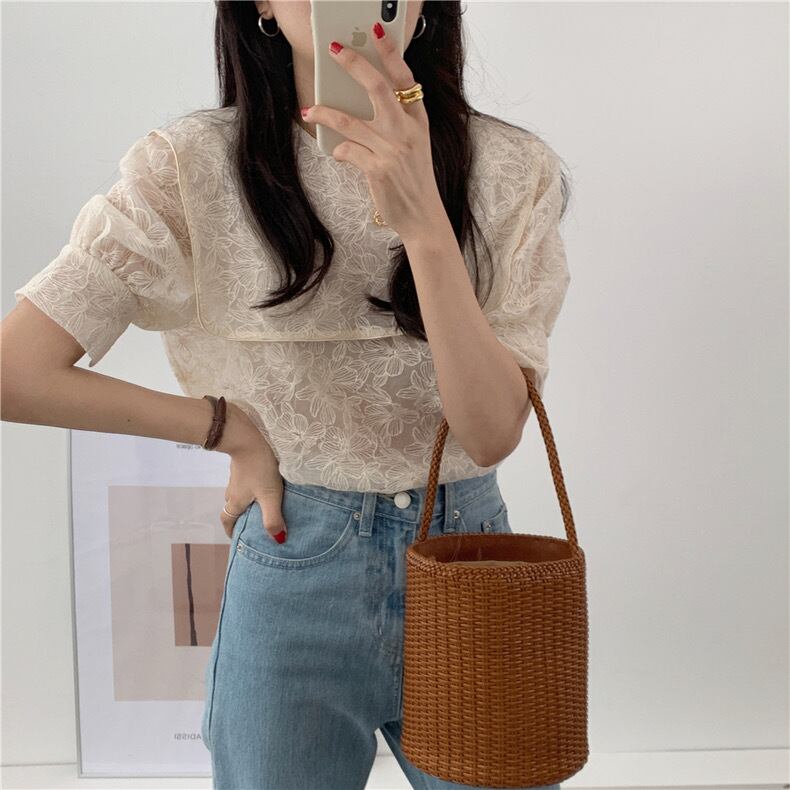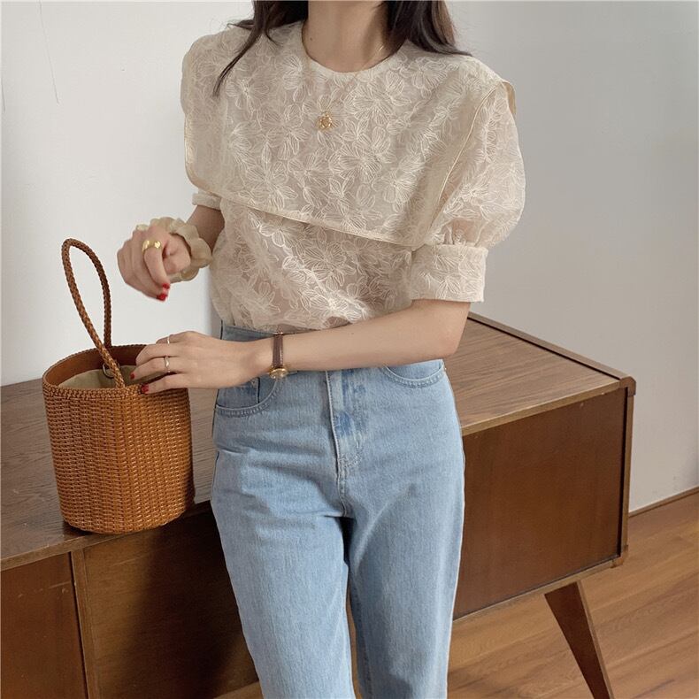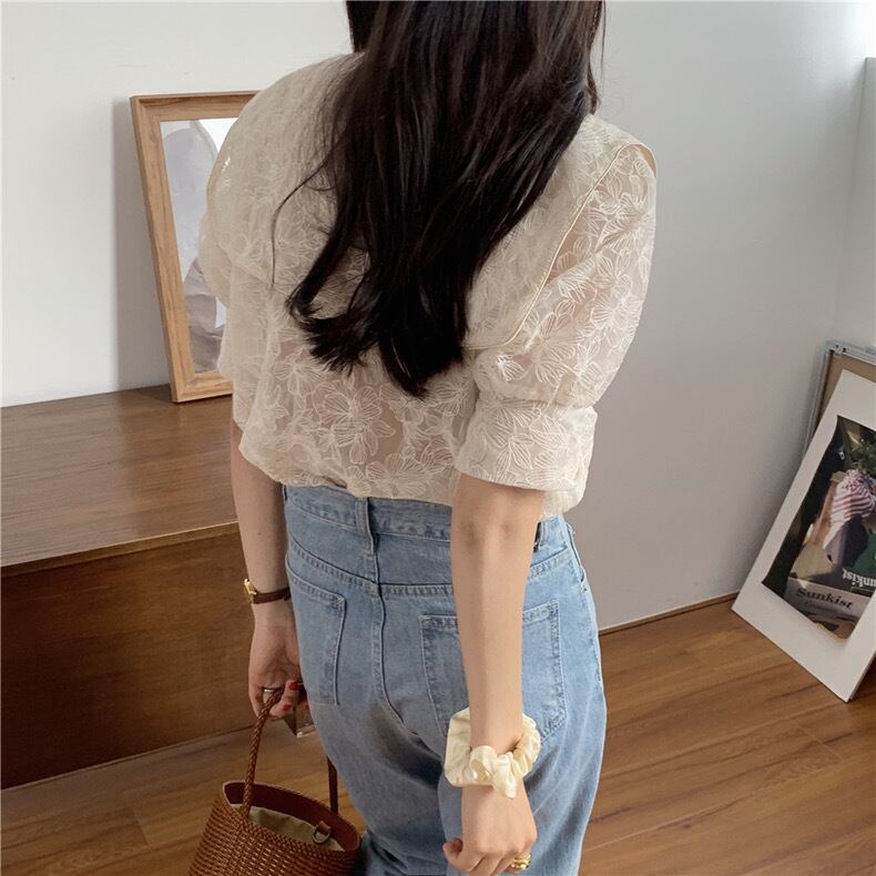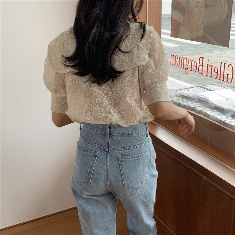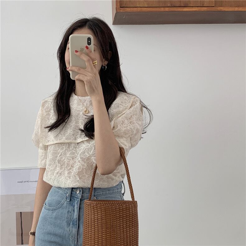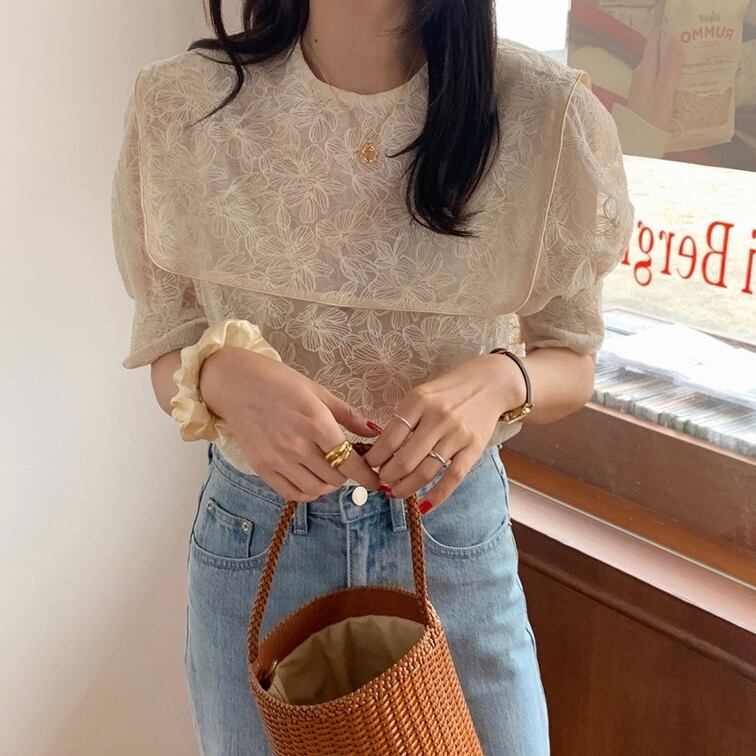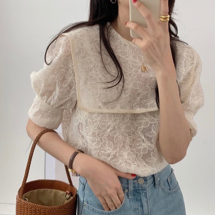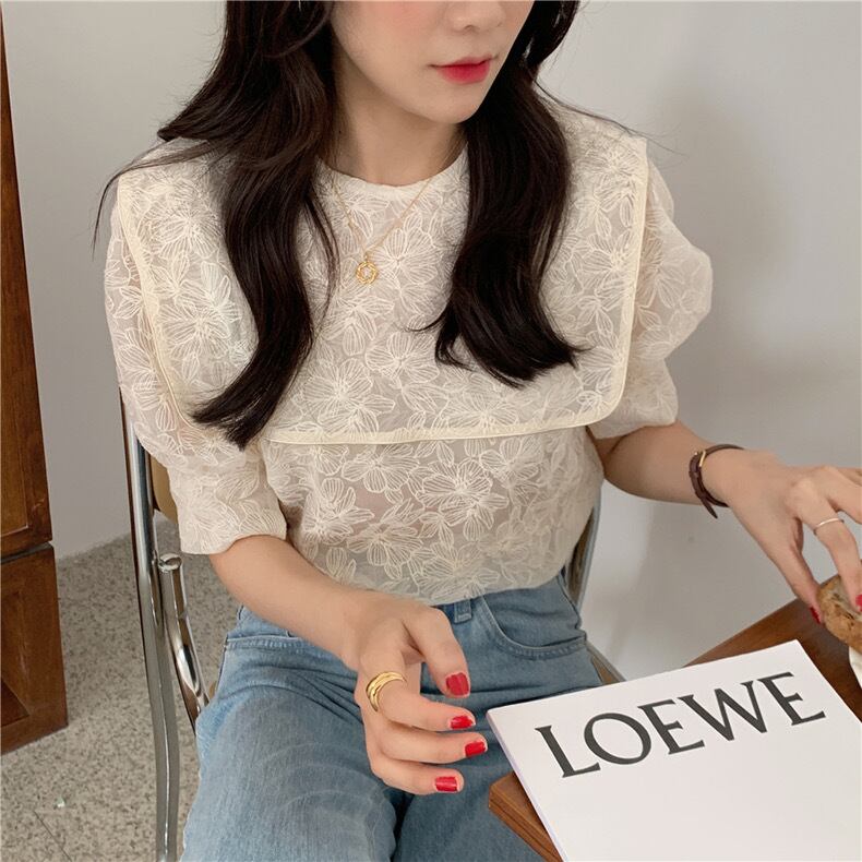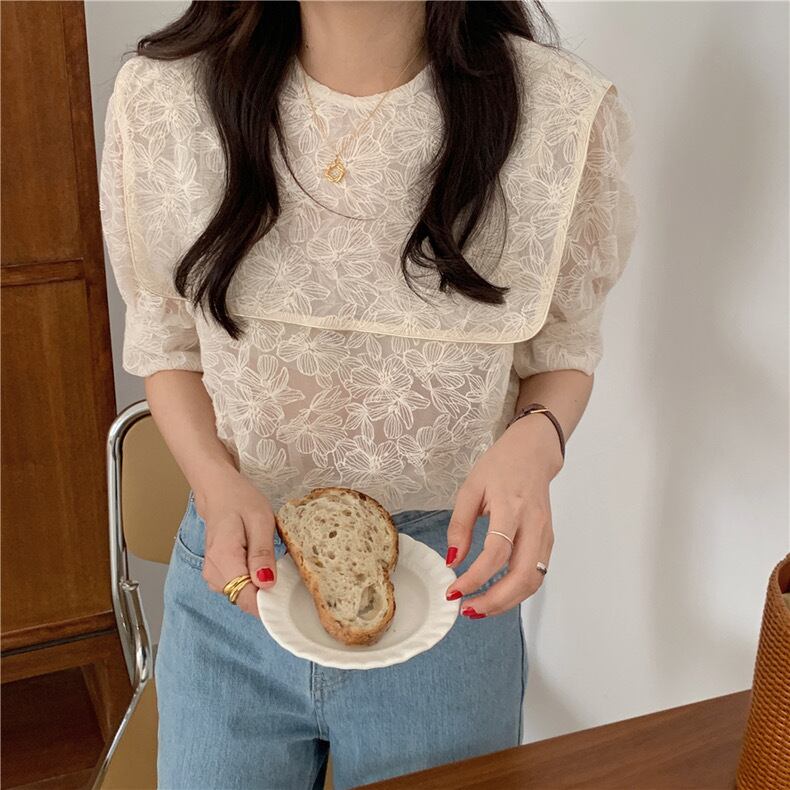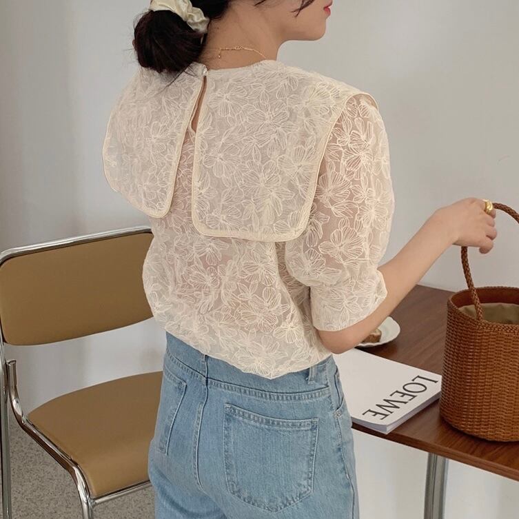 【tops】レース刺繍セーラー襟ブラウス XA3150