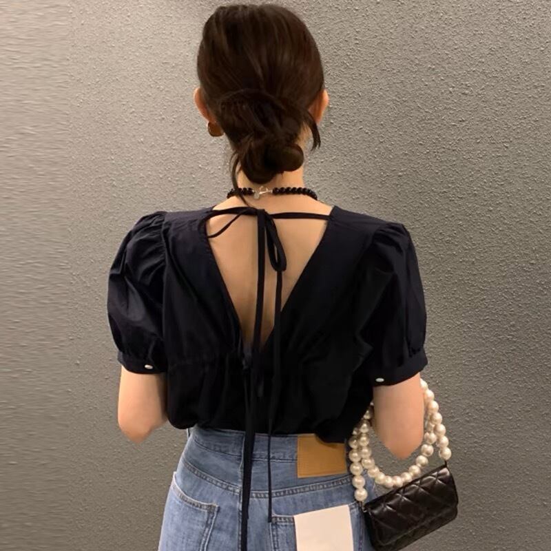 【tops】バックデザインラウンドネットトップス2色 XA1503