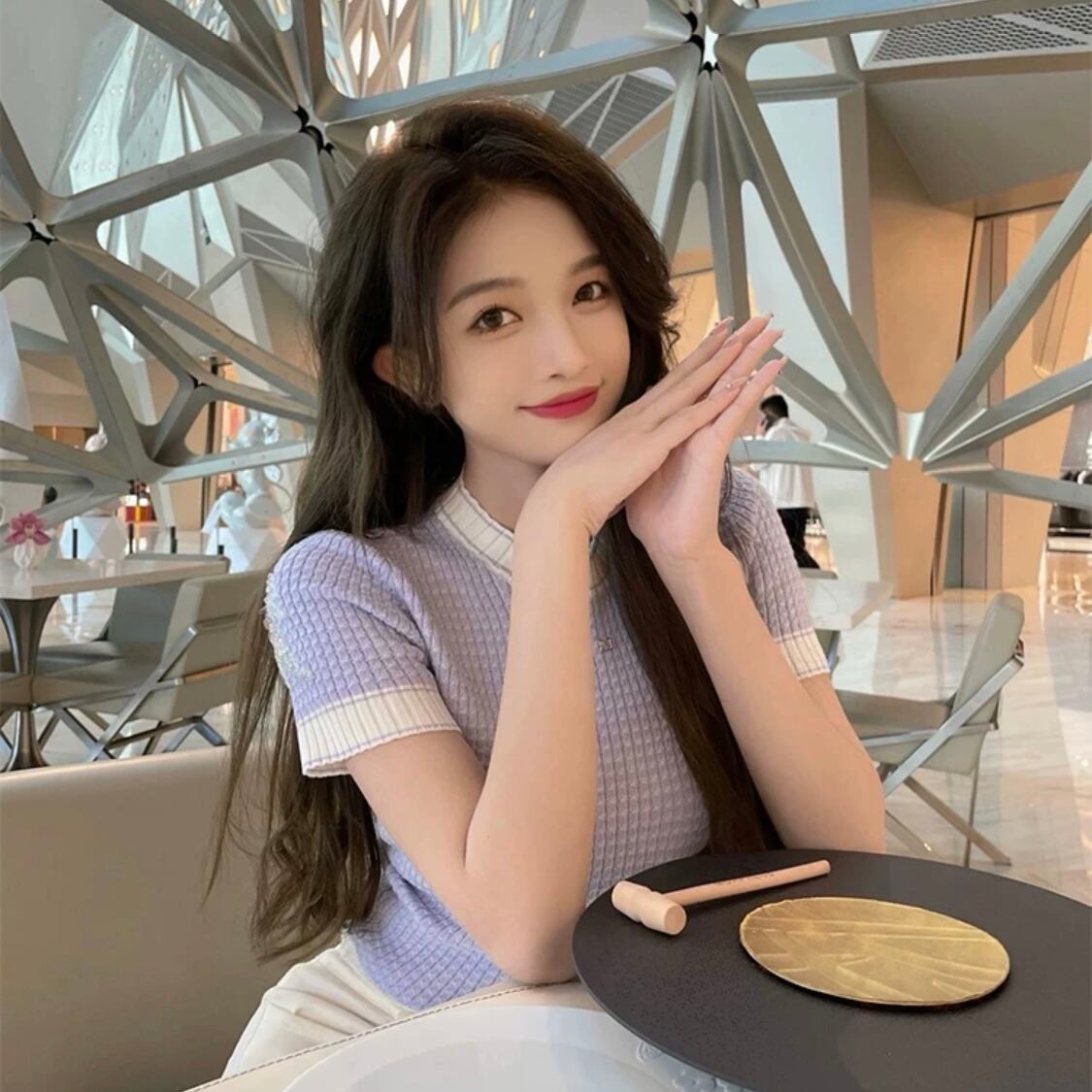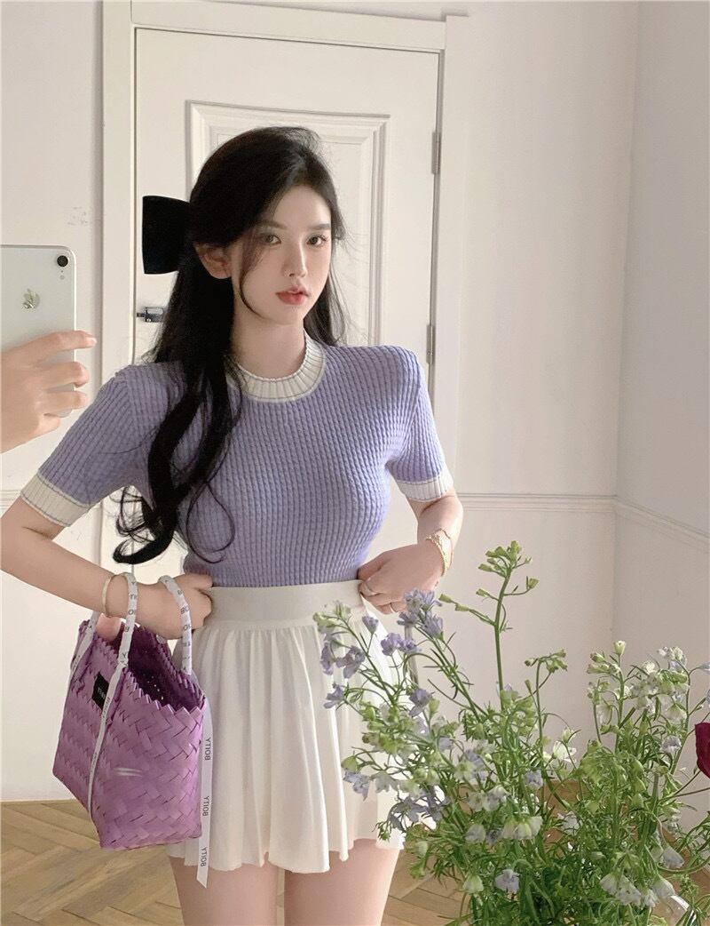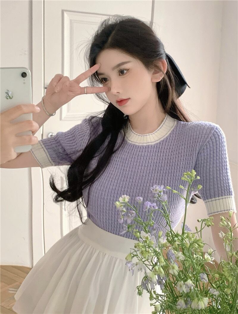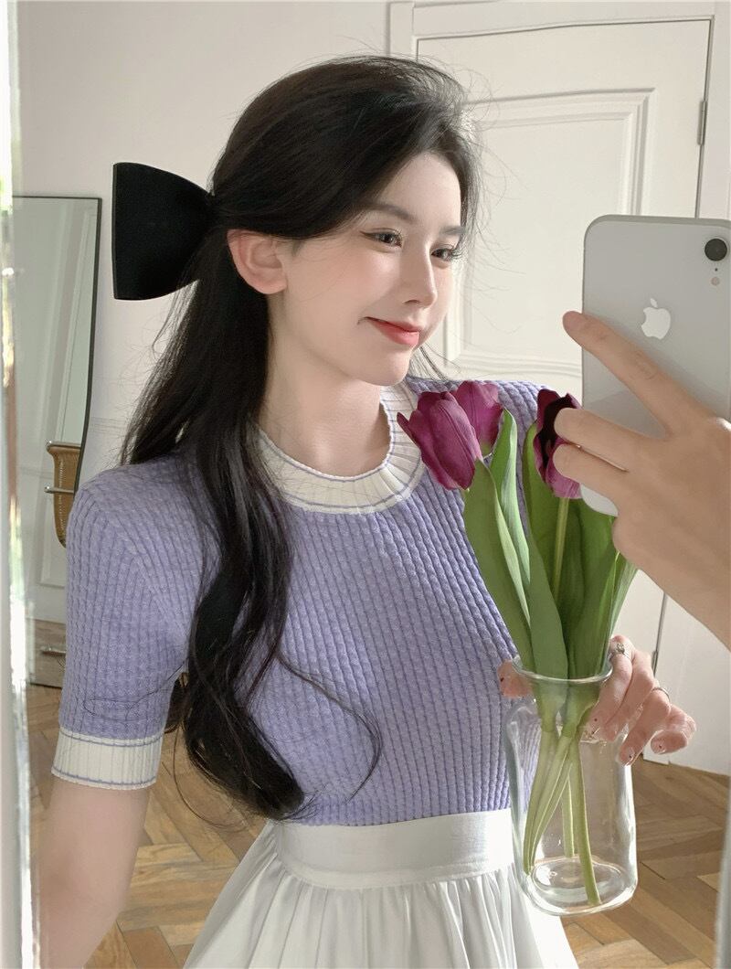 【tops】ラウンドネット配色トップス XA1244