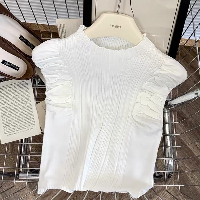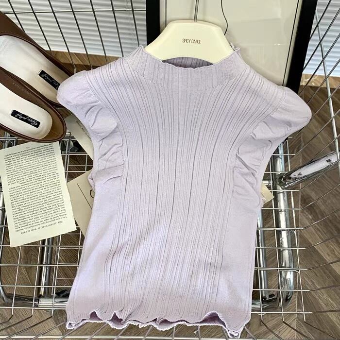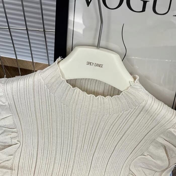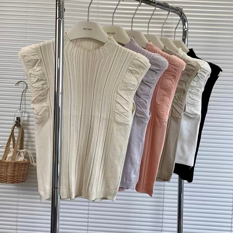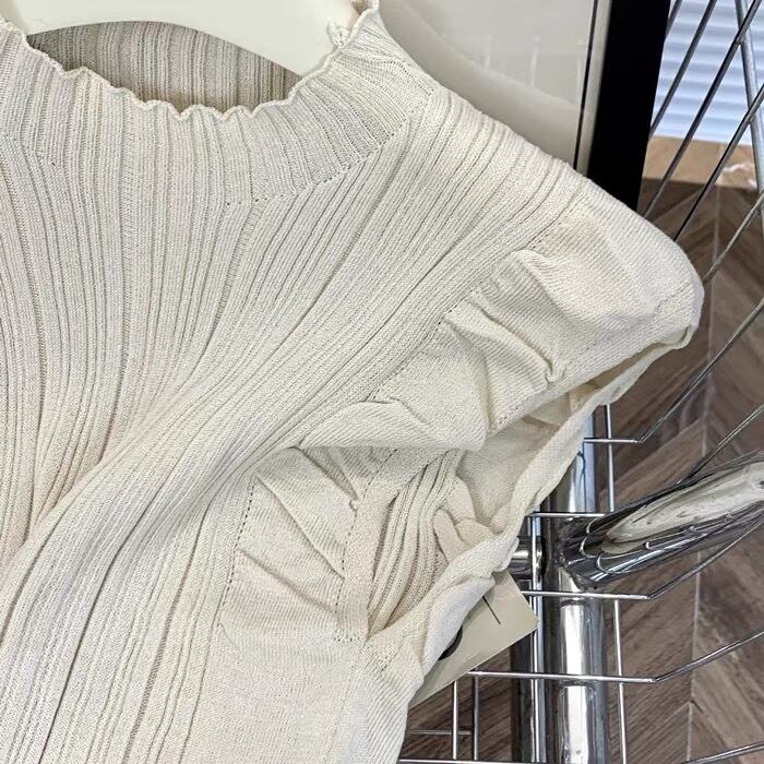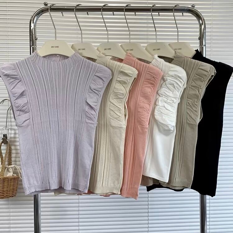 【tops】フリルノースリーブニットトップス6色 XA1408