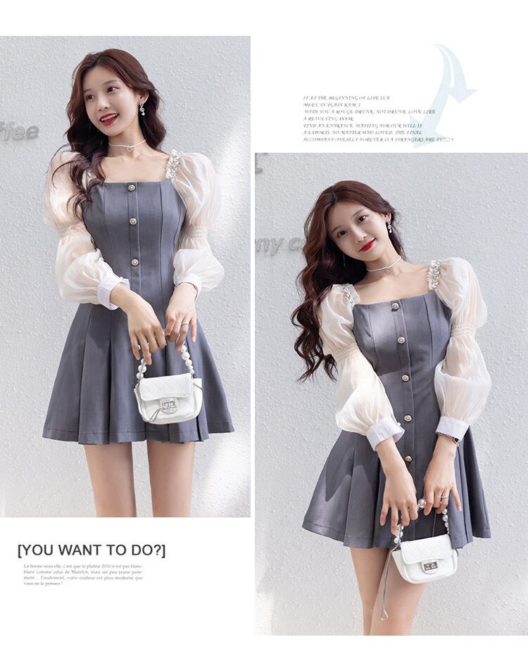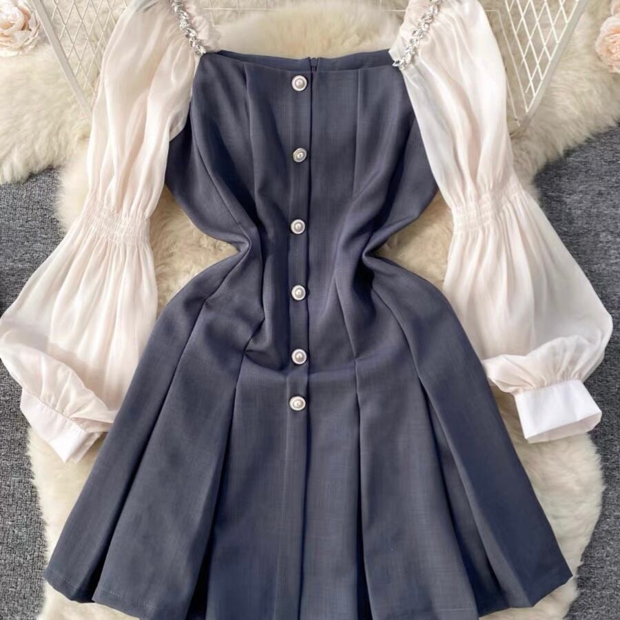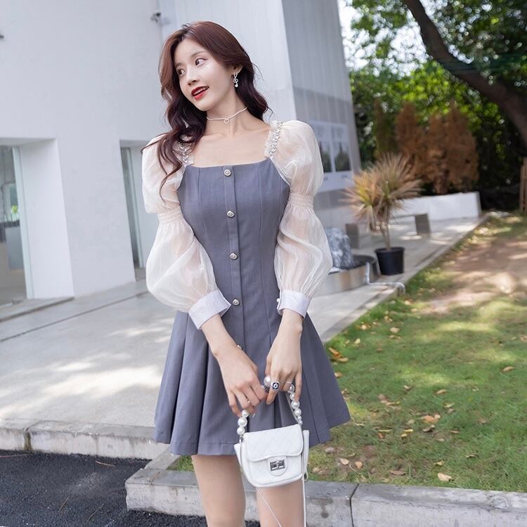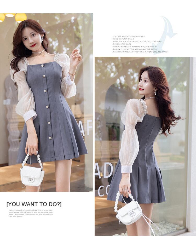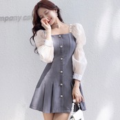 【dress】スクエアネット切り替えワンピース2色 XA3001
