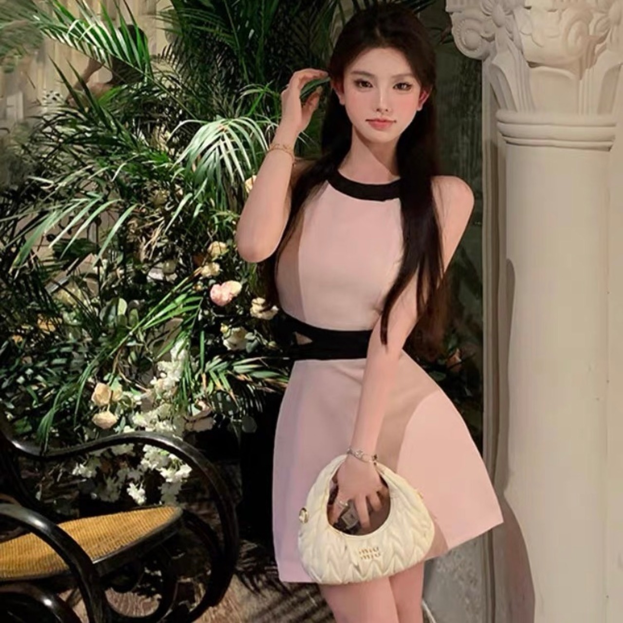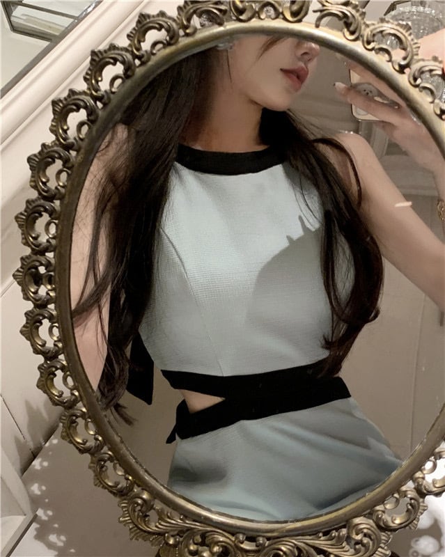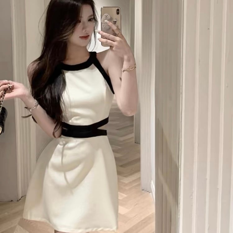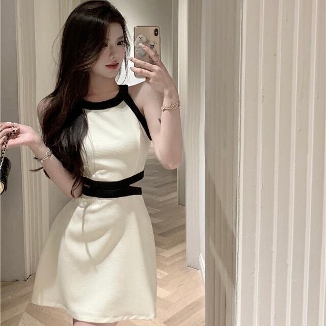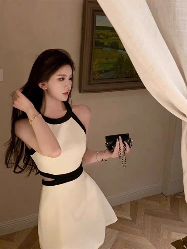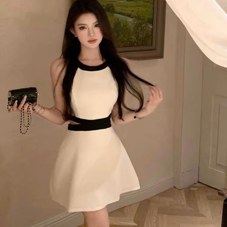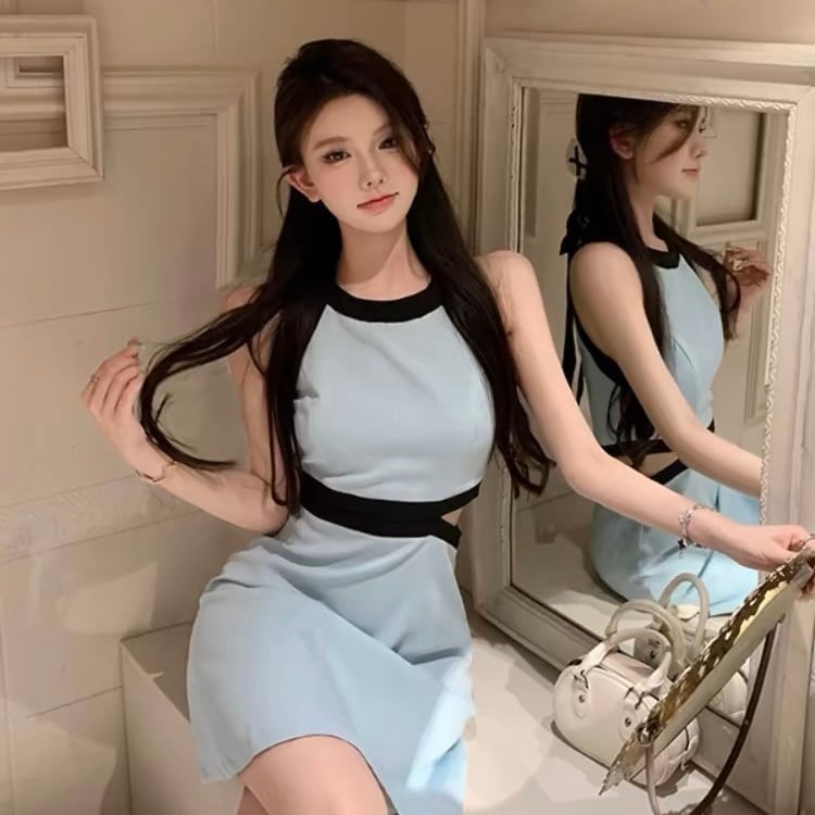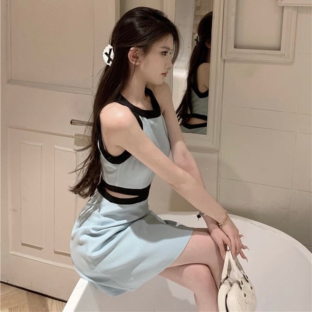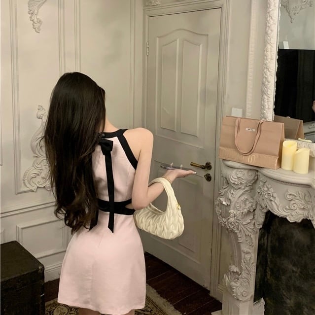 【dress】バックリボンノースリーブ配色ミニワンピース3色 SY2231