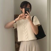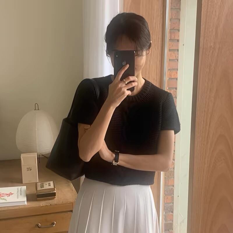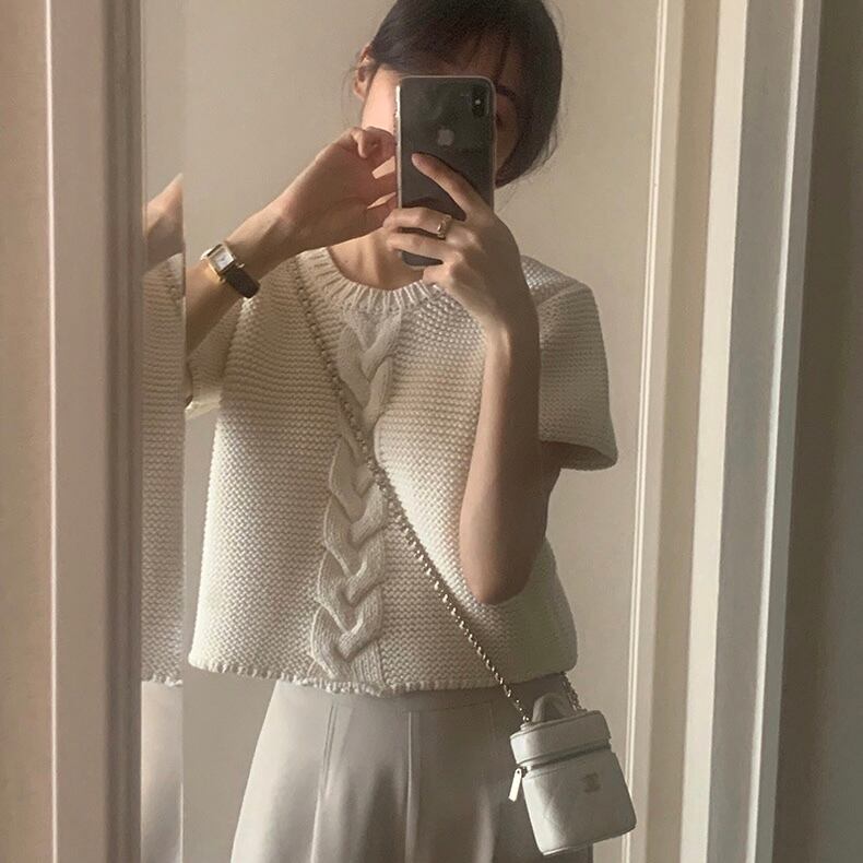 【tops】ラウンドネックニットトップス2色 XA1315