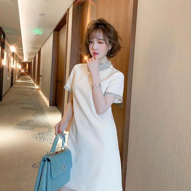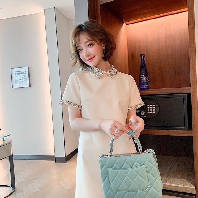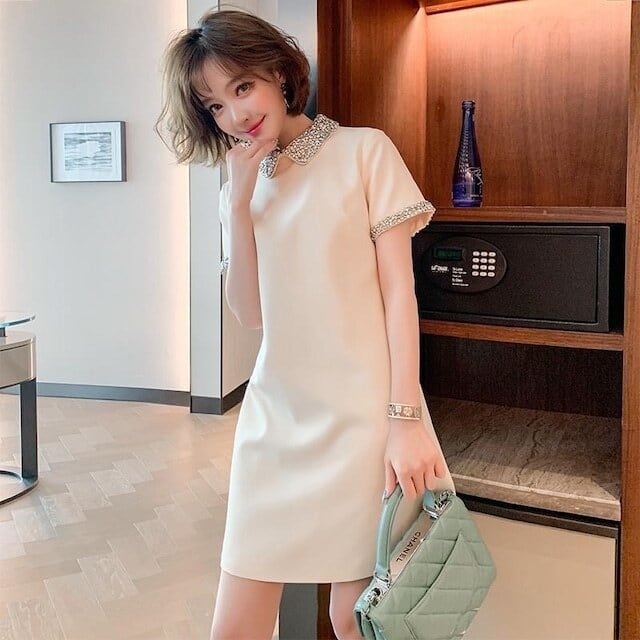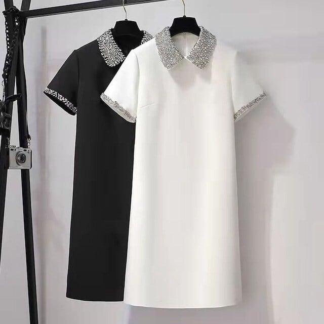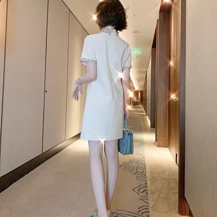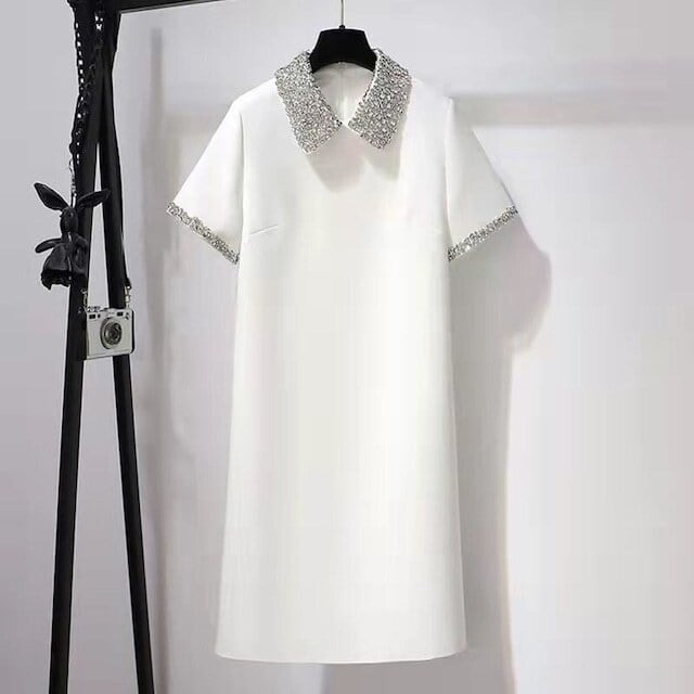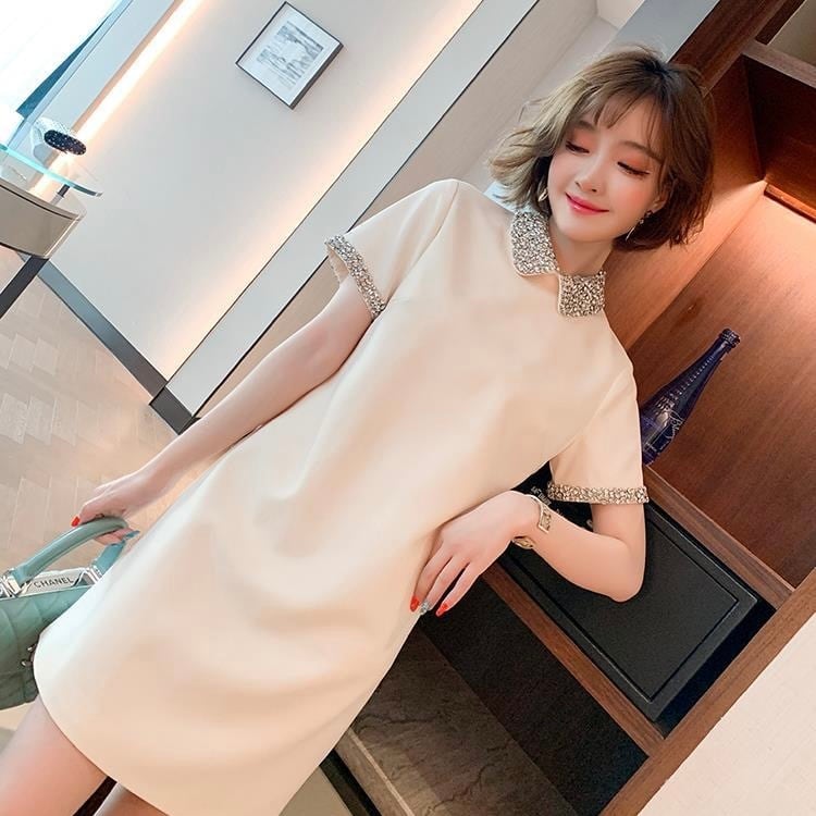 【dress】ラインストーン襟ミニワンピース2色 XA3119