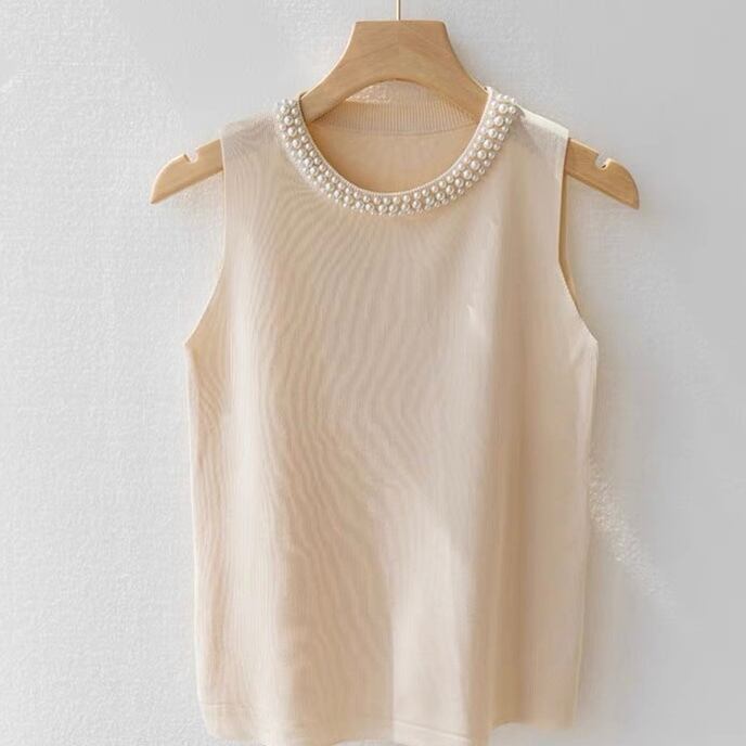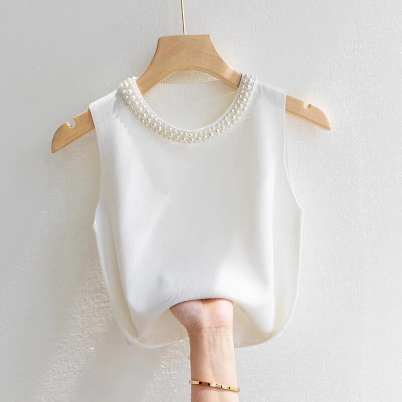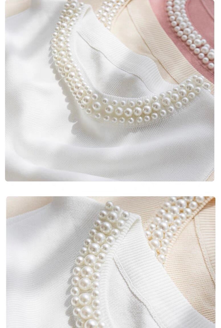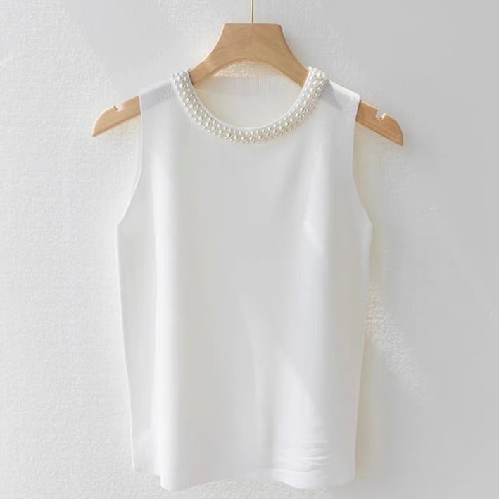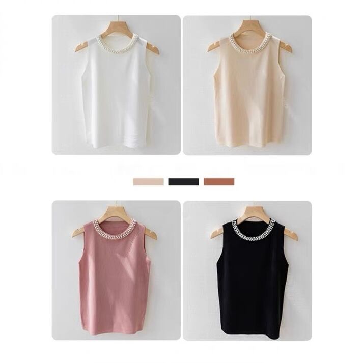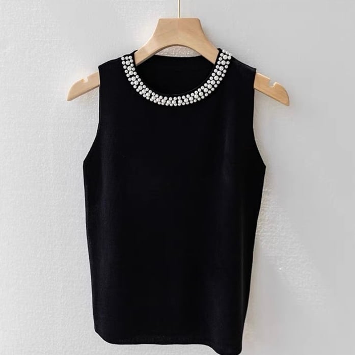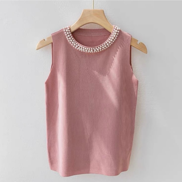 【tops】パールデザインノースリーブニットトップ4色 ZM3003