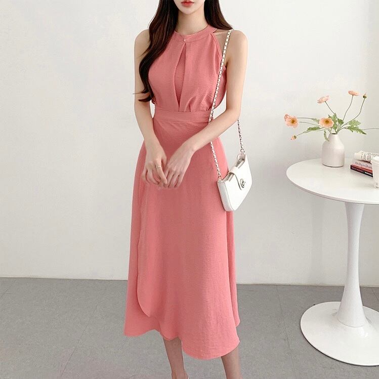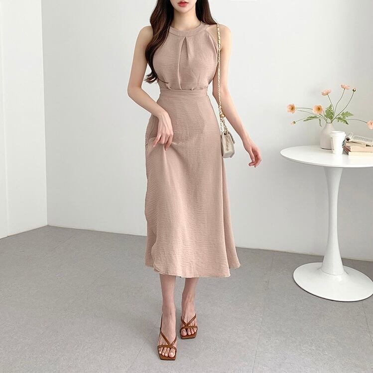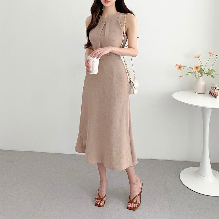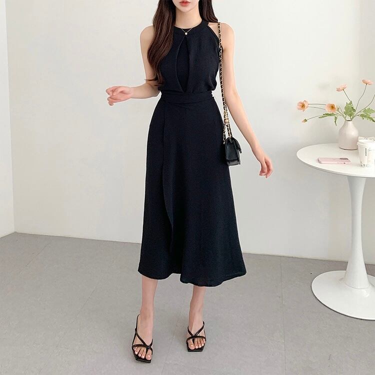 【set】ノースリーブトップスxスリット入りスカート3色 JY3005