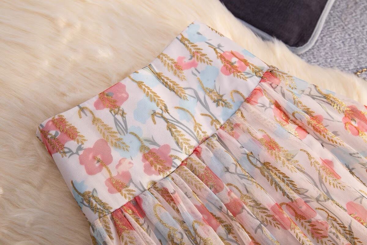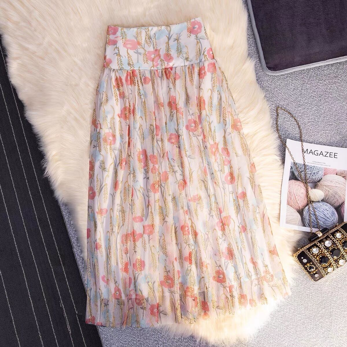 【bottoms】フラワーチュールハイウエストスカート JY3014