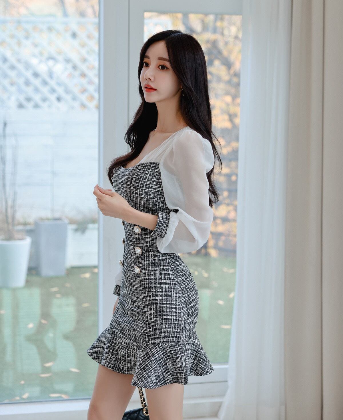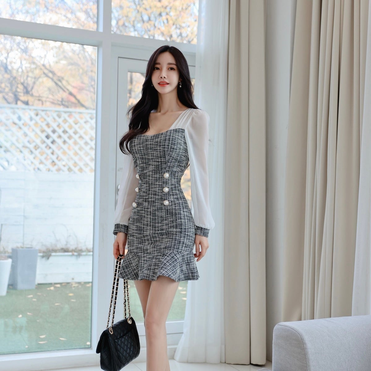 【dress】スクエアネックマーメイドミニワンピース JY3016
