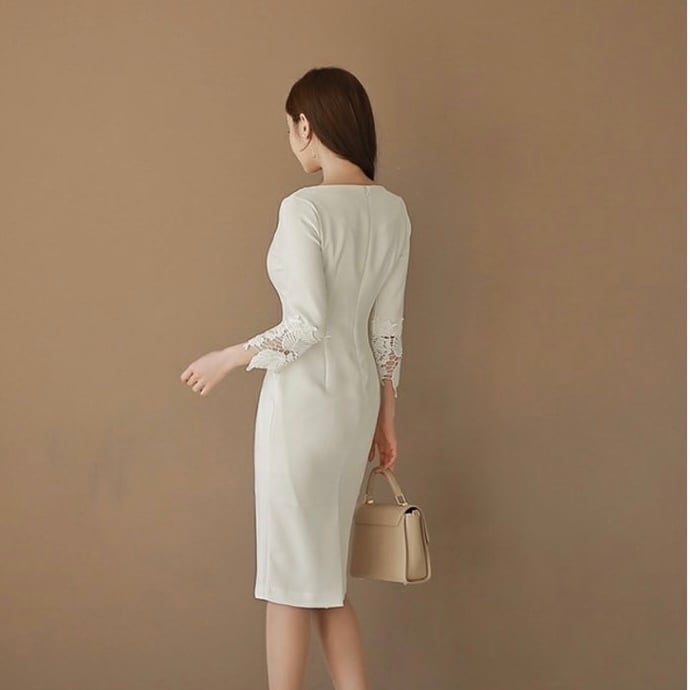 【dress】レース切り替えラウンドネックワンピース2色 XA2205