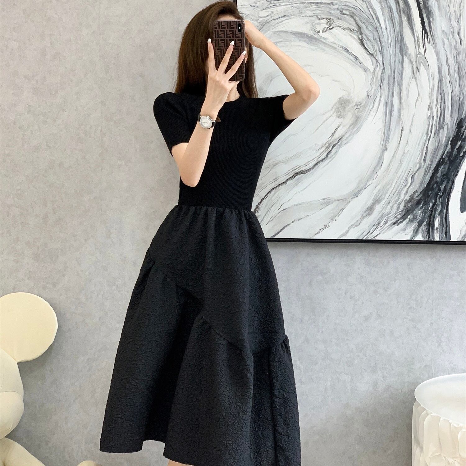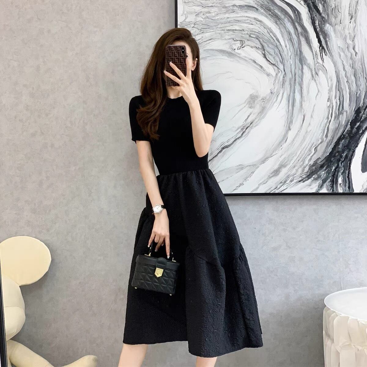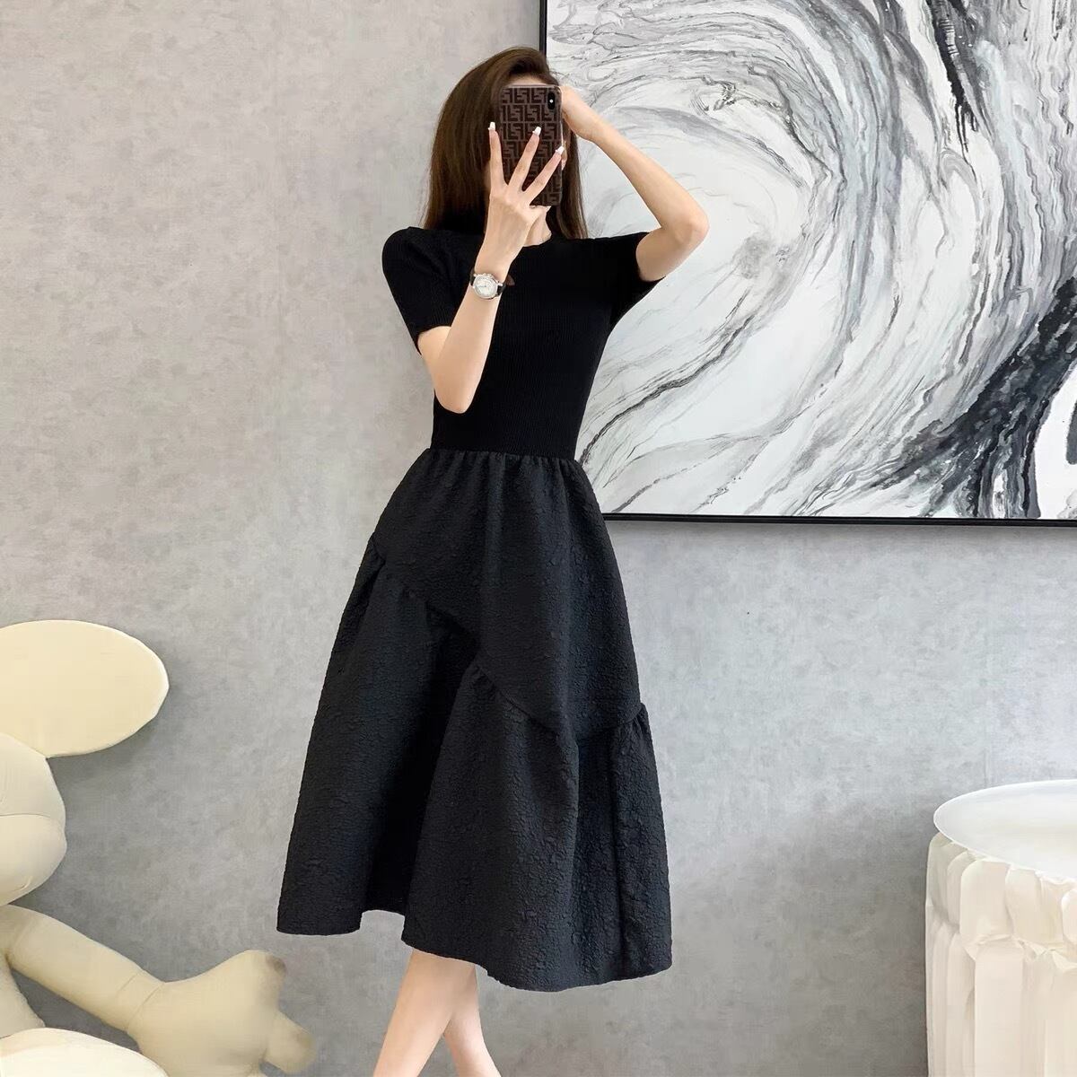 【dress】フレンチニット切り替えワンピース JY3221
