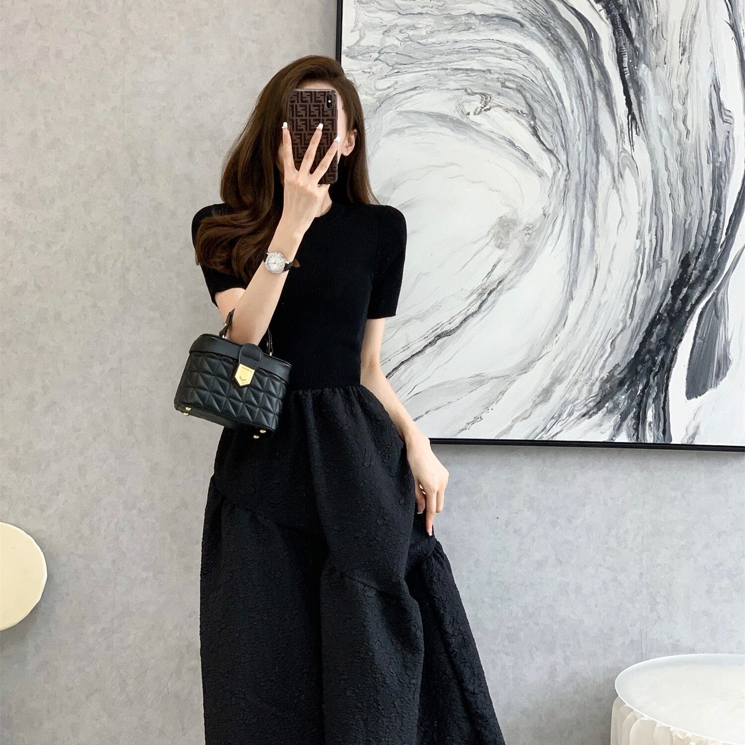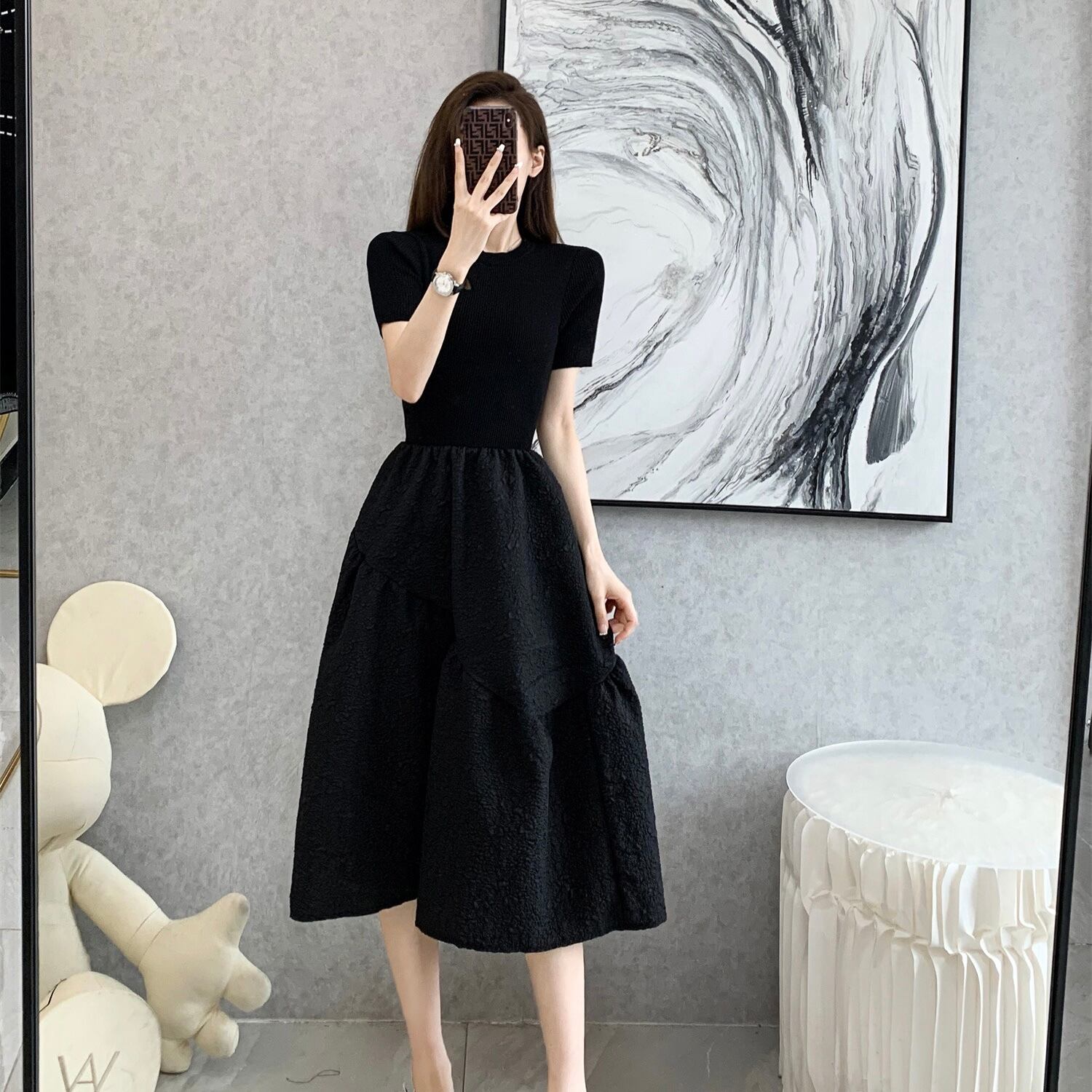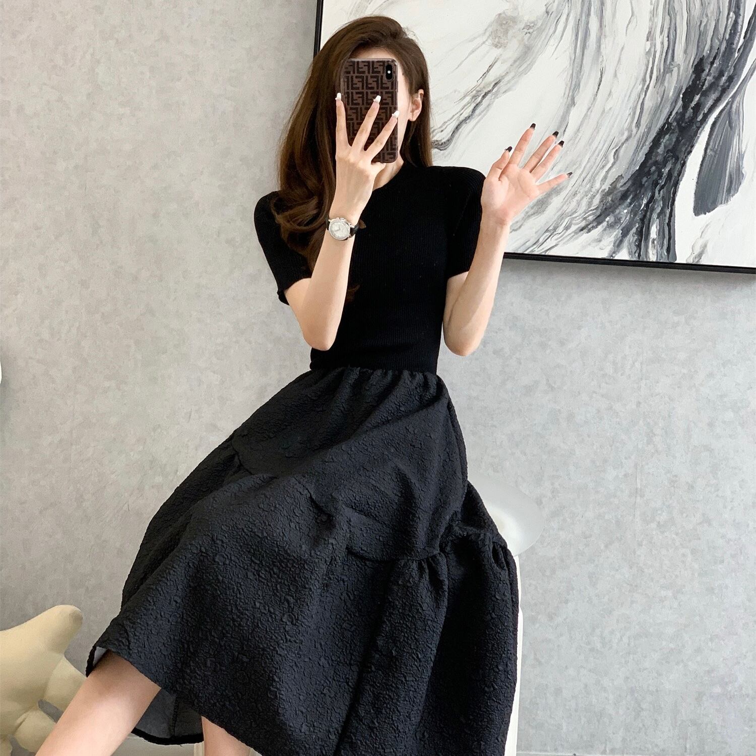 【dress】フレンチニット切り替えワンピース JY3221
