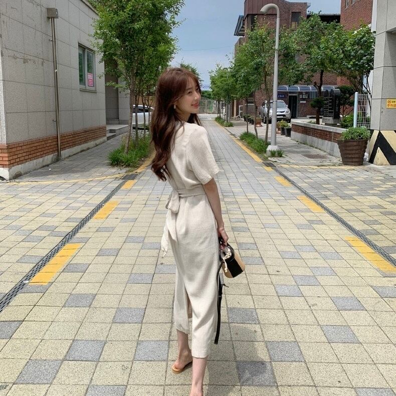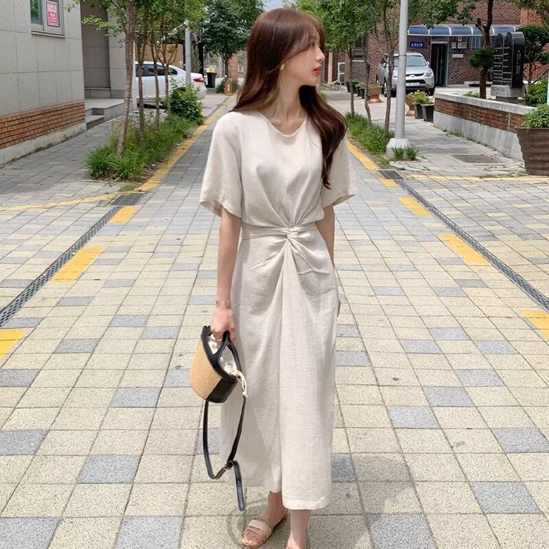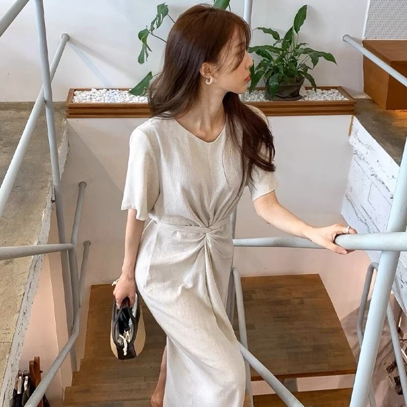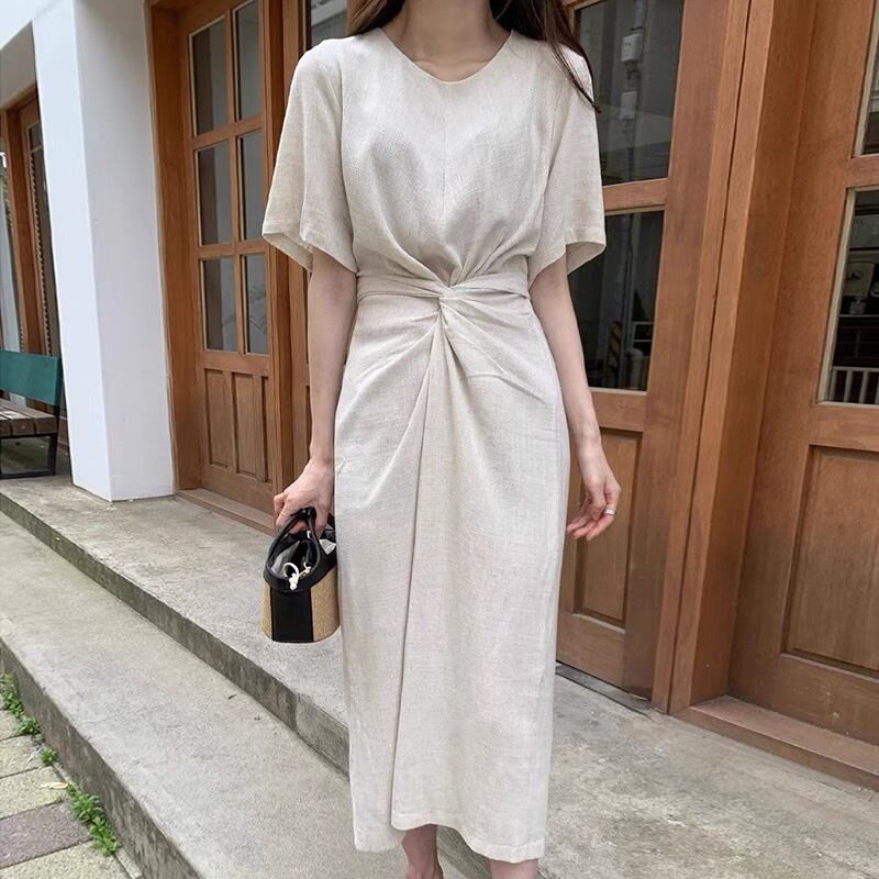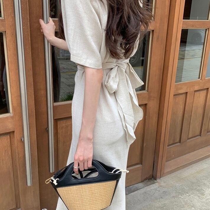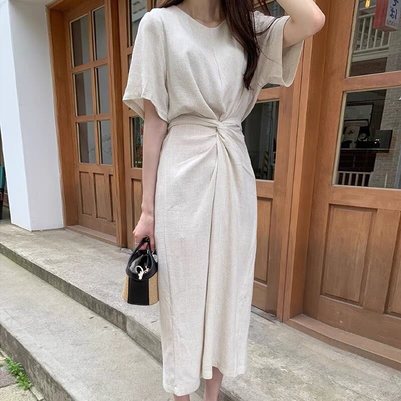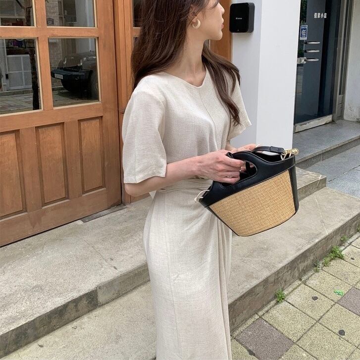 【dress】ラウンドネックリボンベルトワンピース JY3226