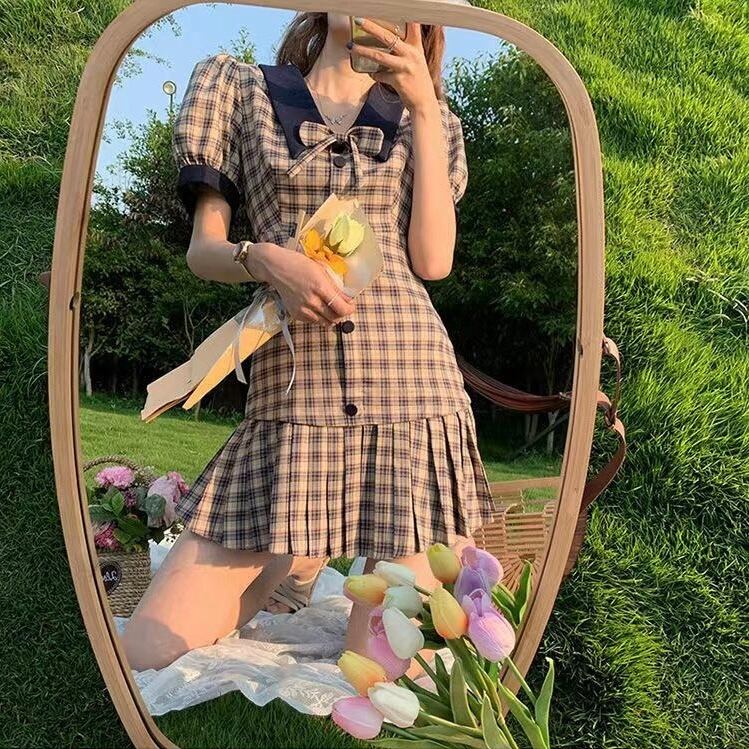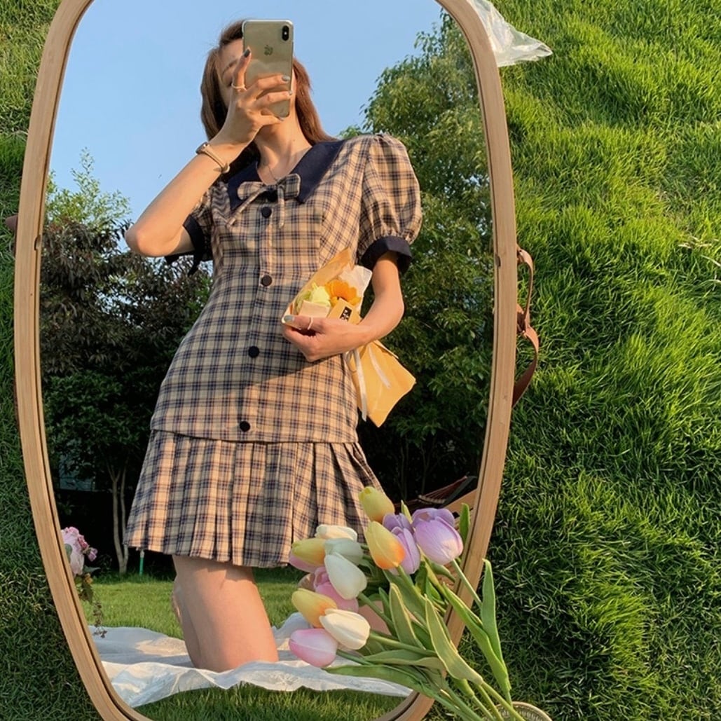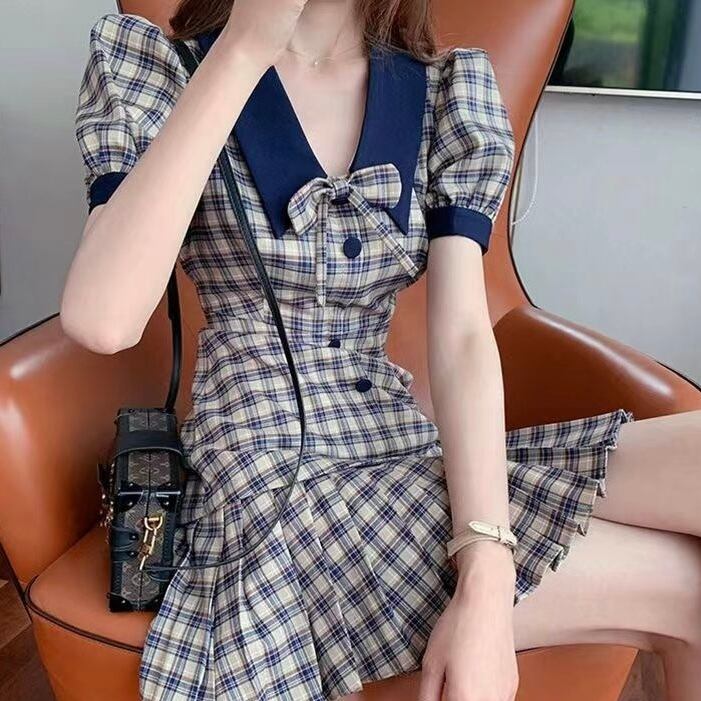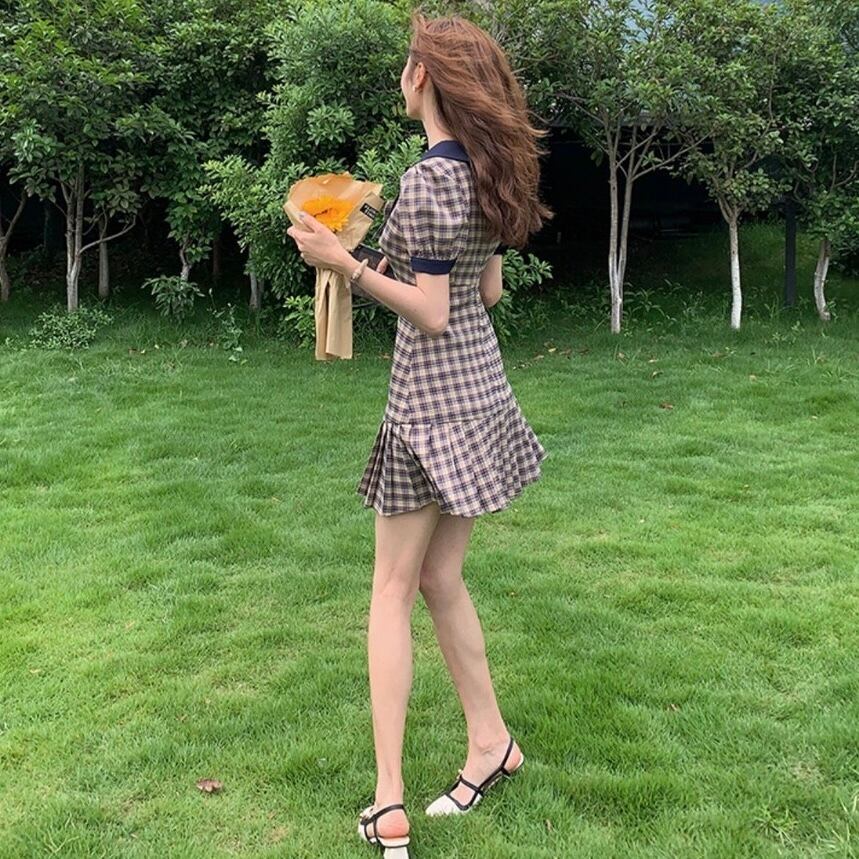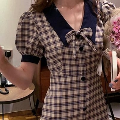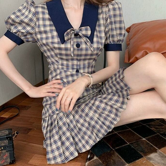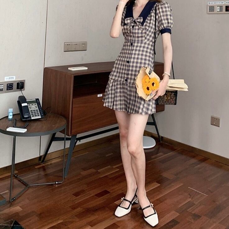 【dress】チェック柄リボンミニワンピース LA0012