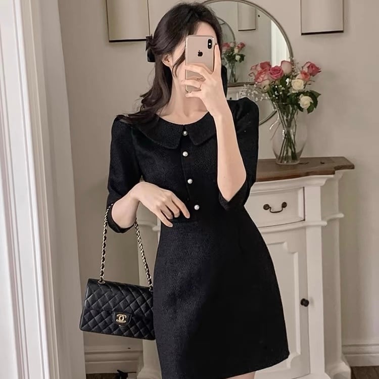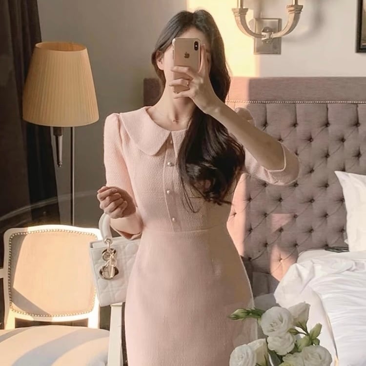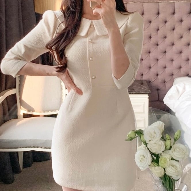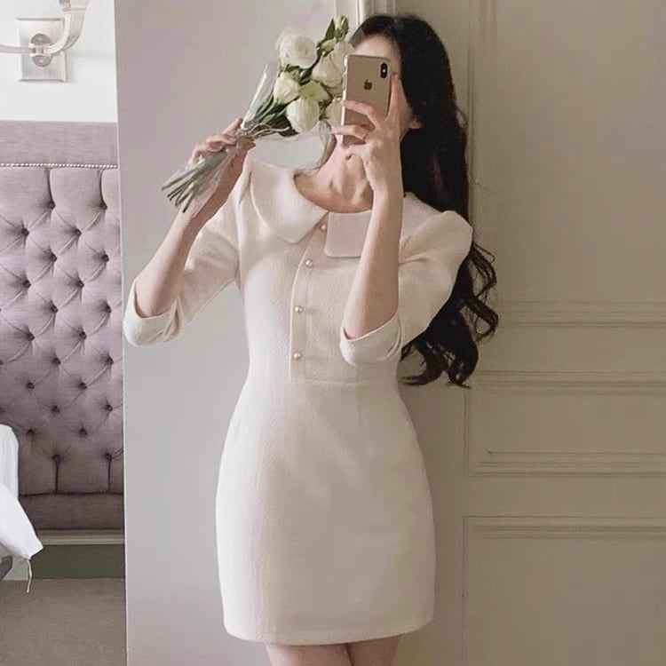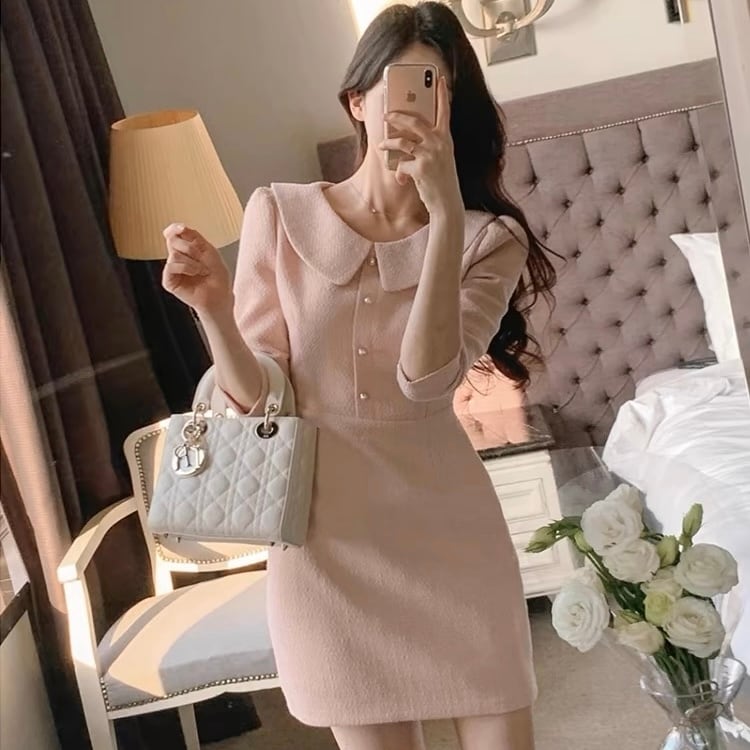 【dress】襟付き韓国系ワンピース3色 ZM3235