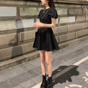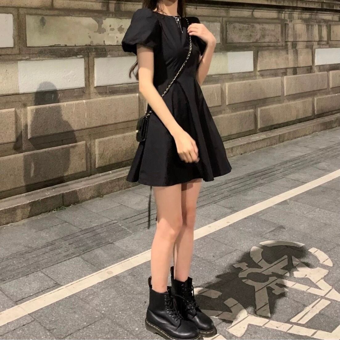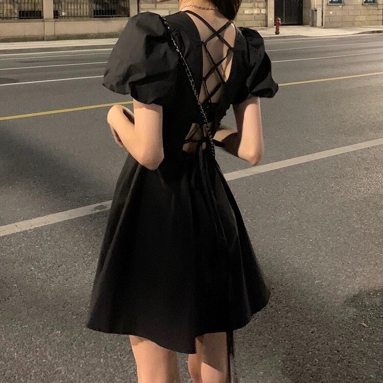 【dress】バックリボンパフスリーブミニワンピース WW2525