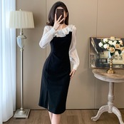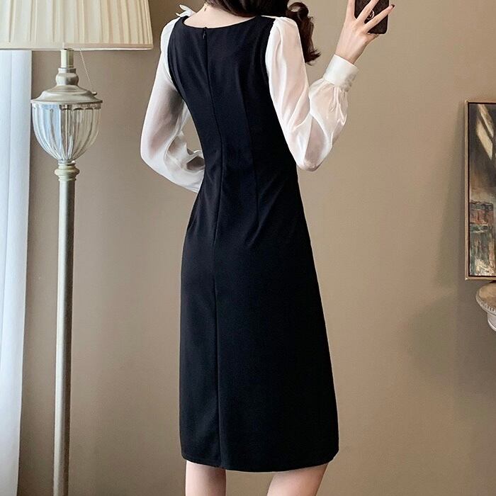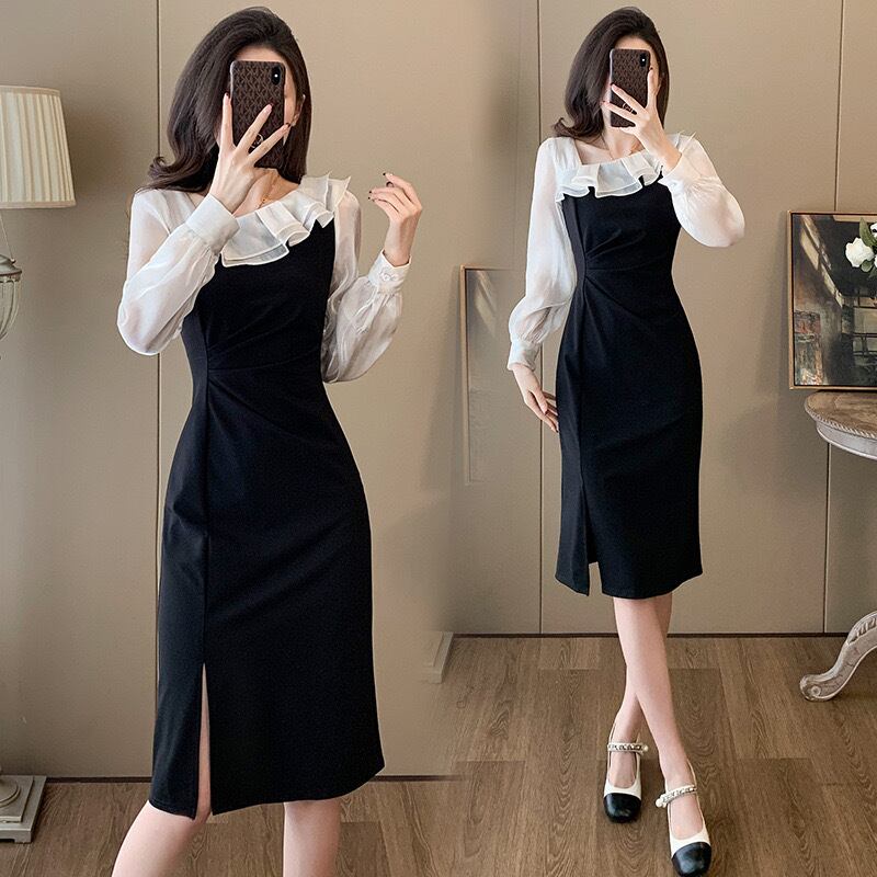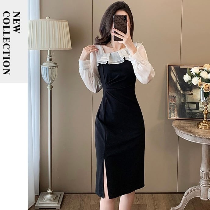 【dress】スリット入りフリル配色ワンピース ZM3245