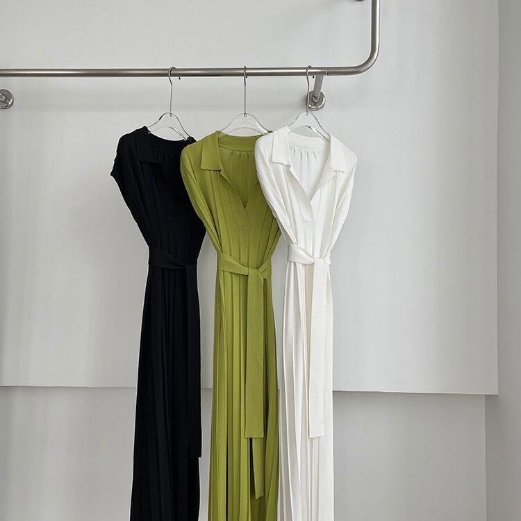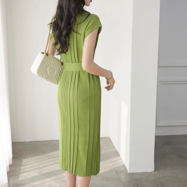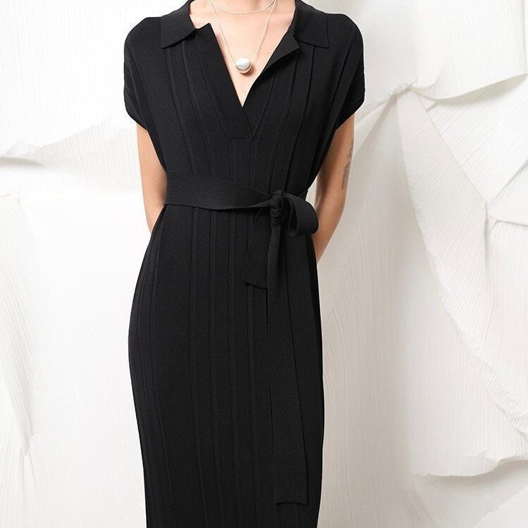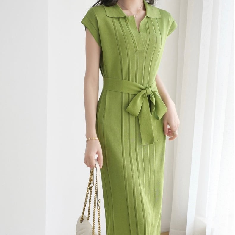 【dress】リボンベルト付きニットワンピース3色 SY0031