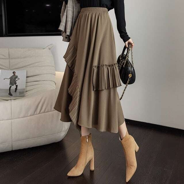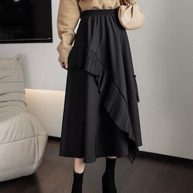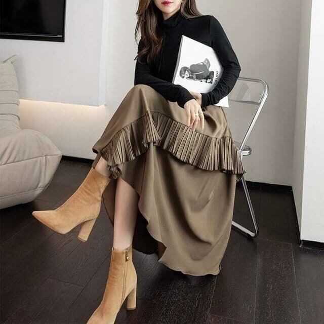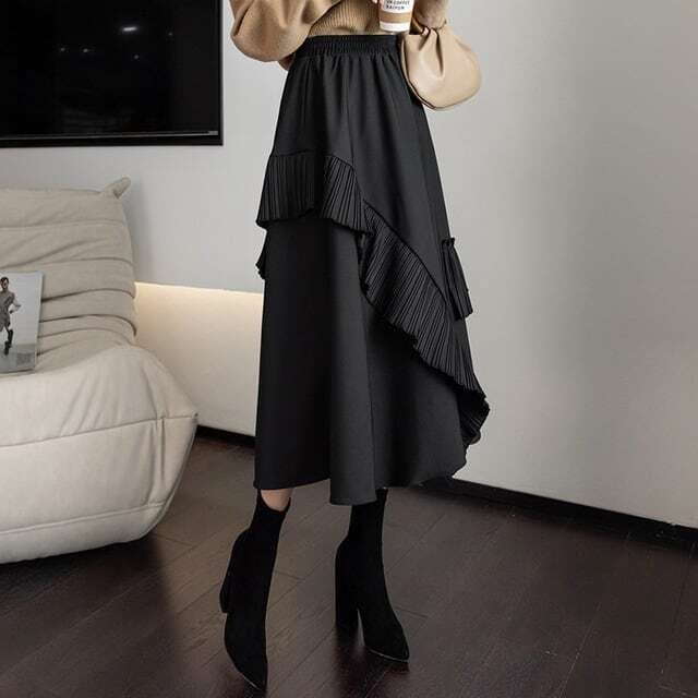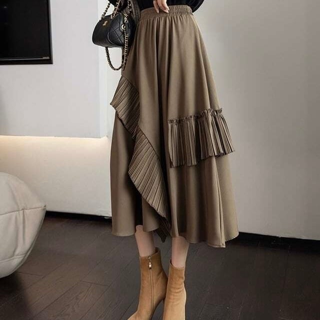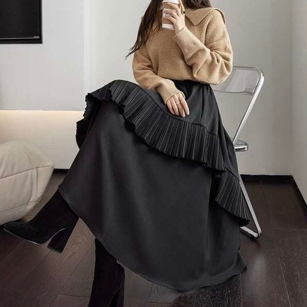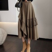 【bottoms】デザインスフリルカジュアルスカート2色 PU0327