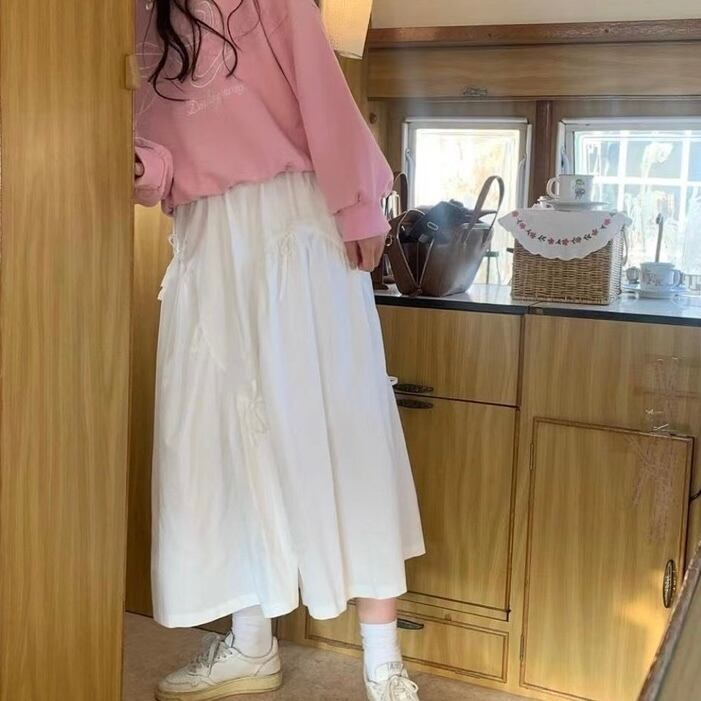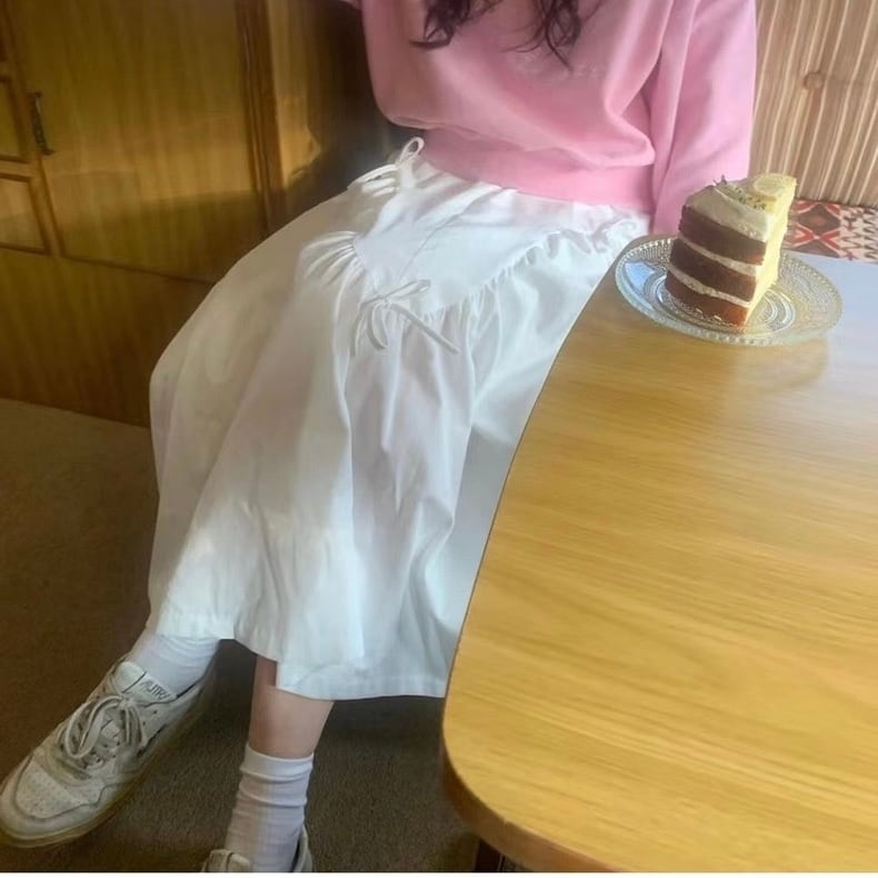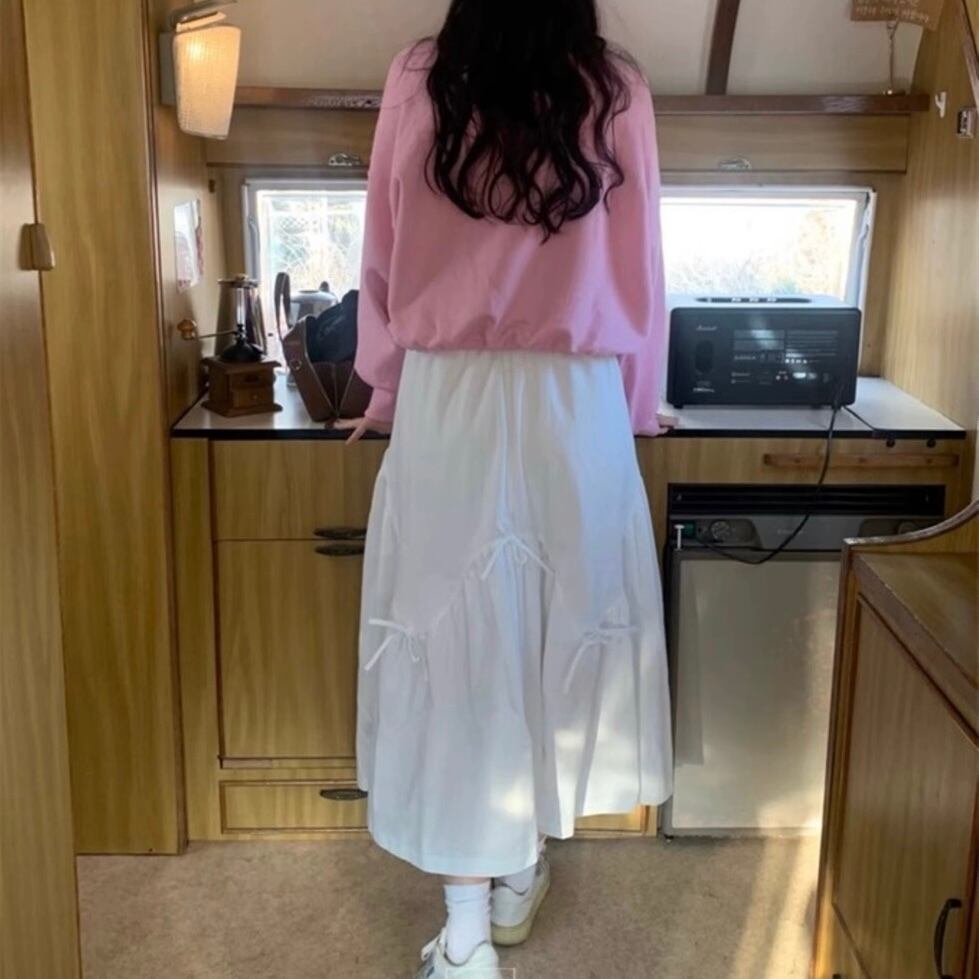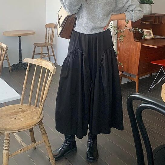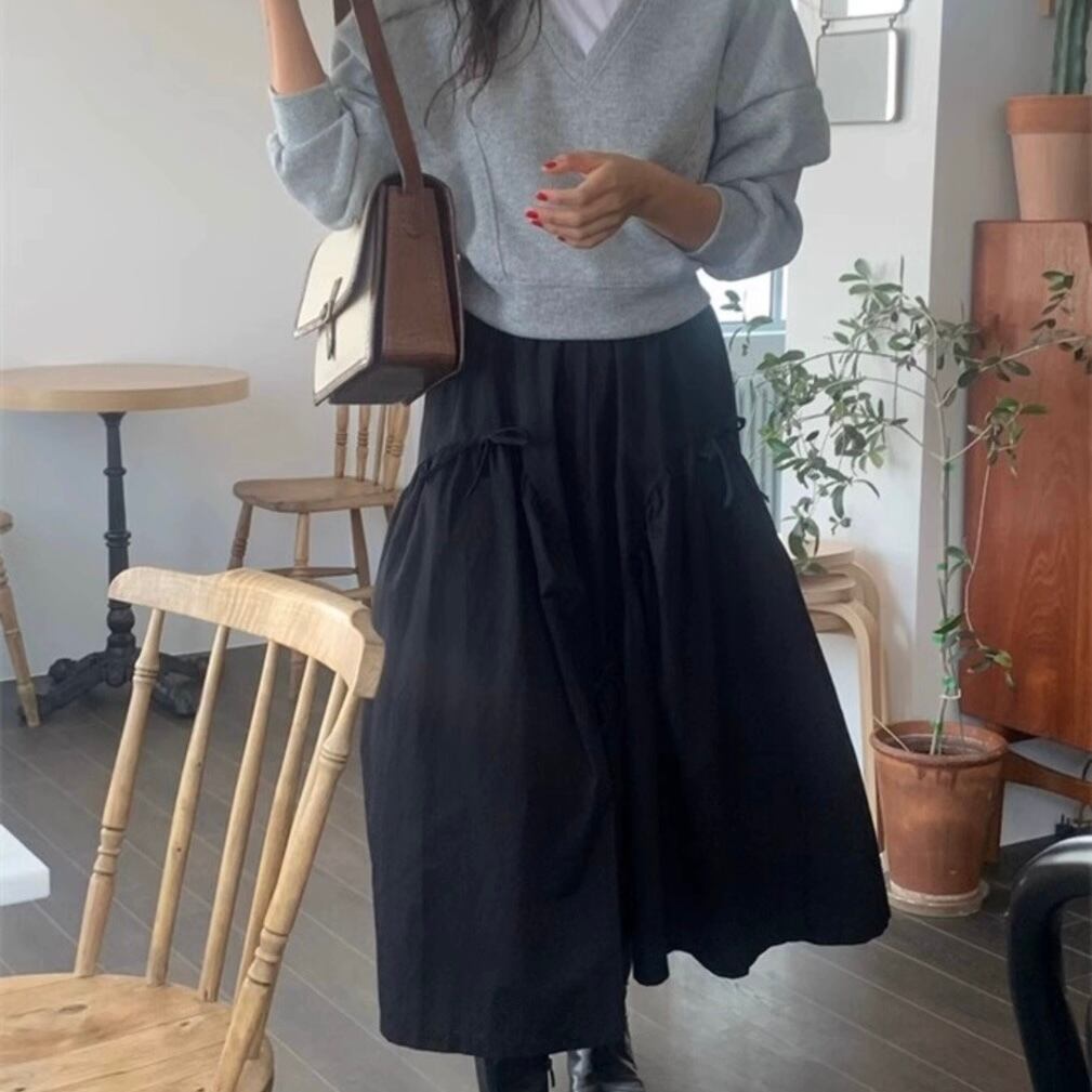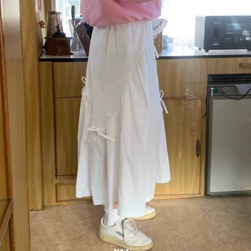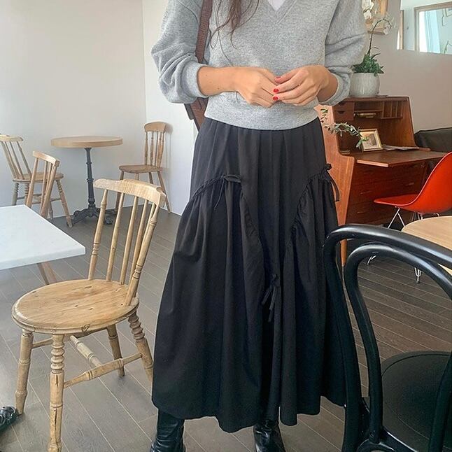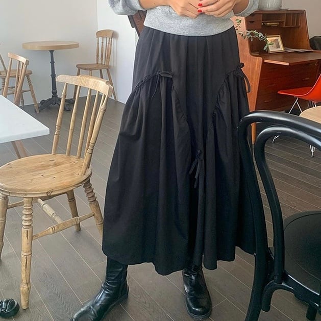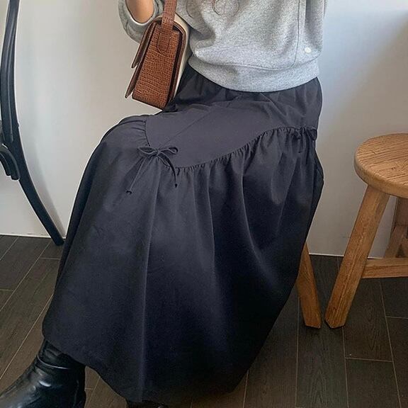 【bottoms】リボンフレアロングスカート2色 PU1122