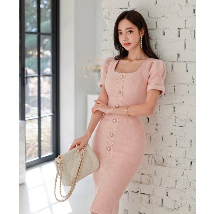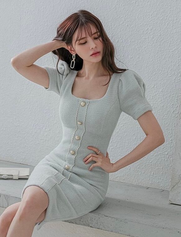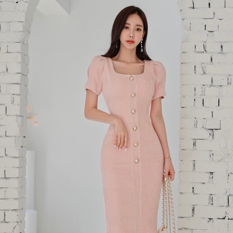 【dress】スクエアネックバックスリット入りワンピース2色 JY3256
