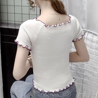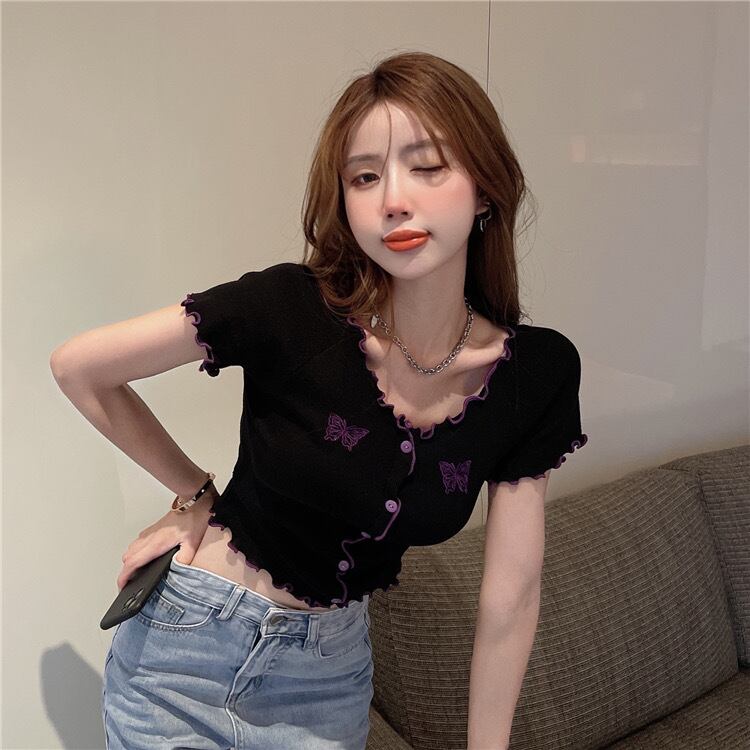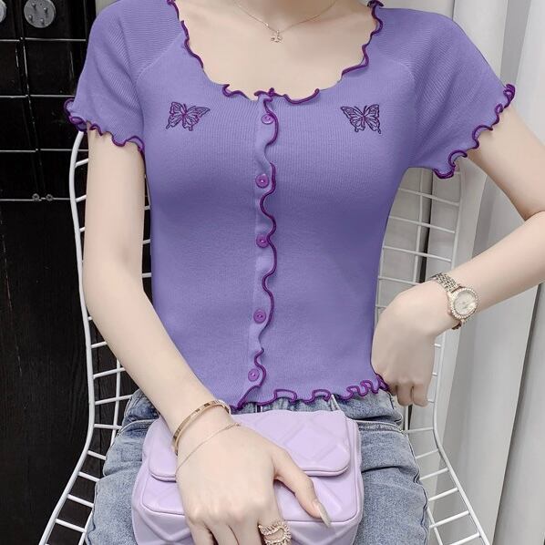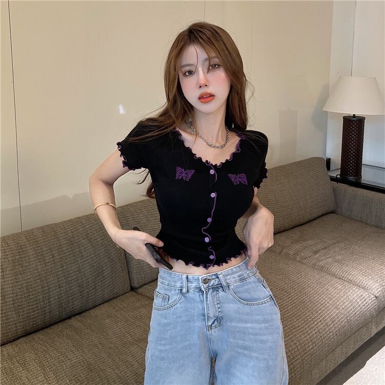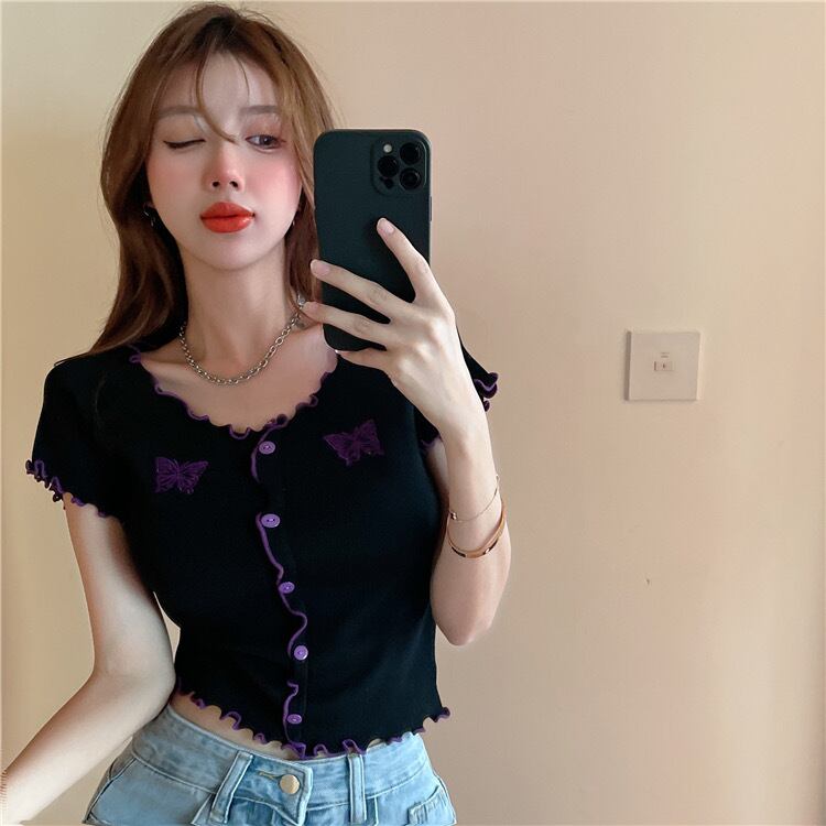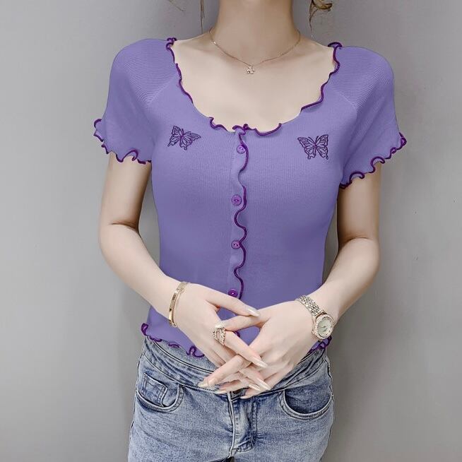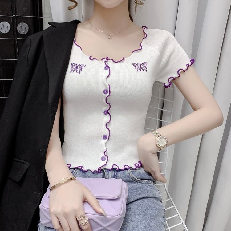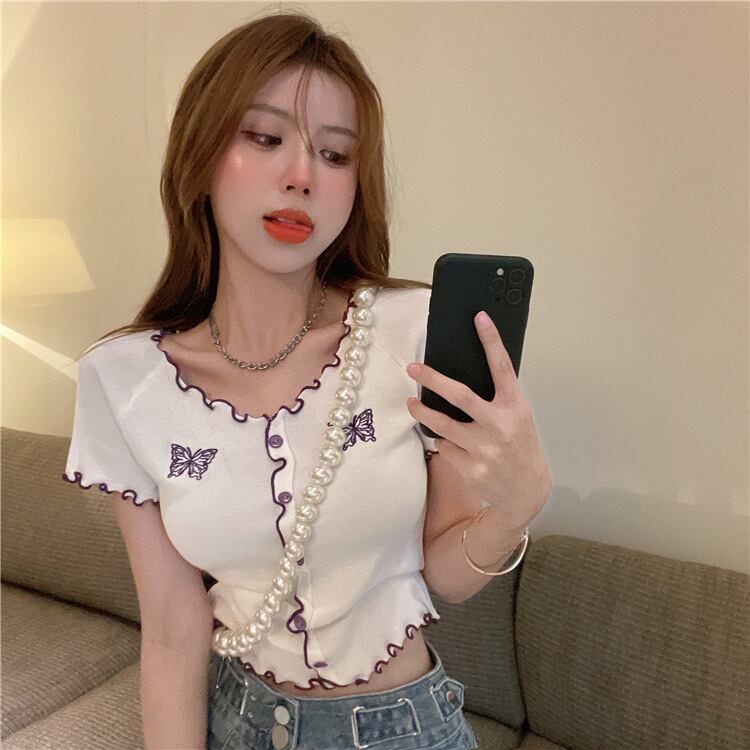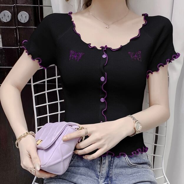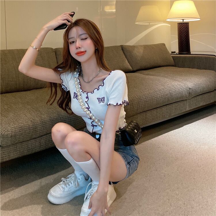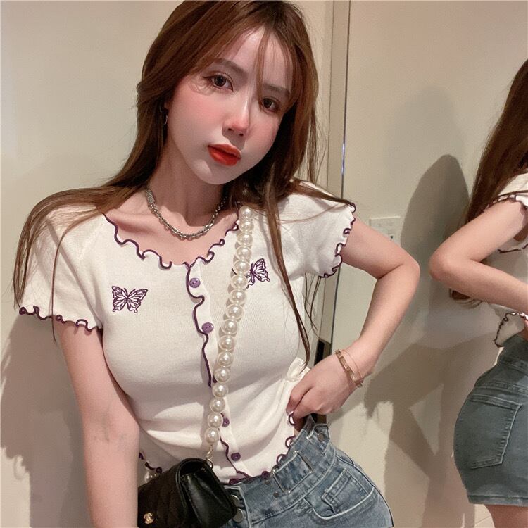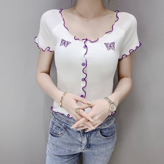 【tops】刺繍バタフライフリルミニTシャツ PU3434