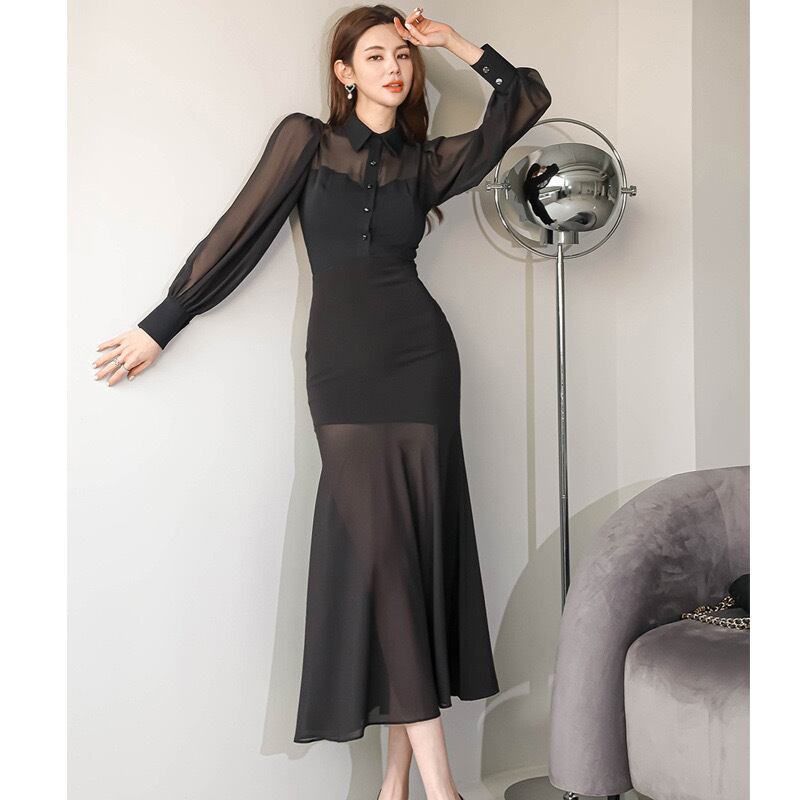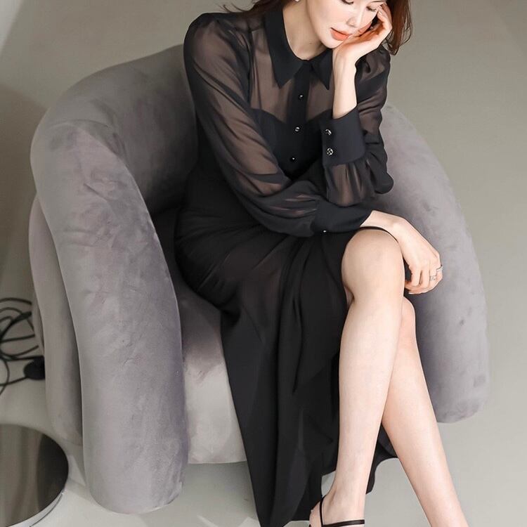 【dress】襟付きフレアワンピース JY3263