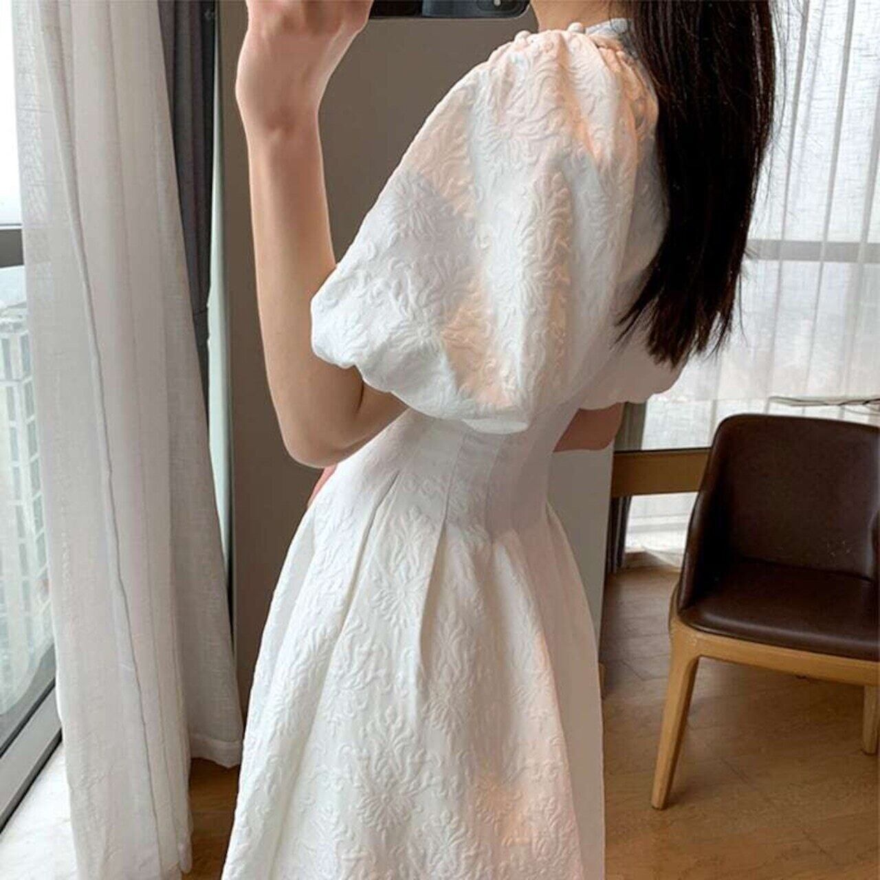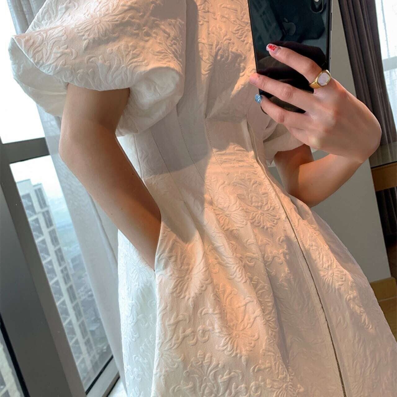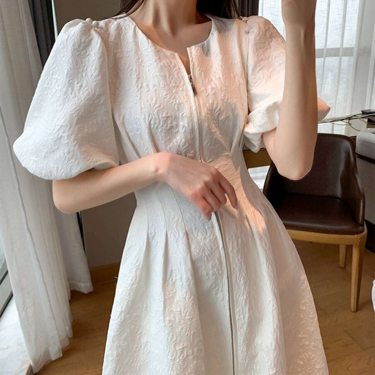 【dress】パフスリーブジャガード柄ジッパーワンピース MM1122