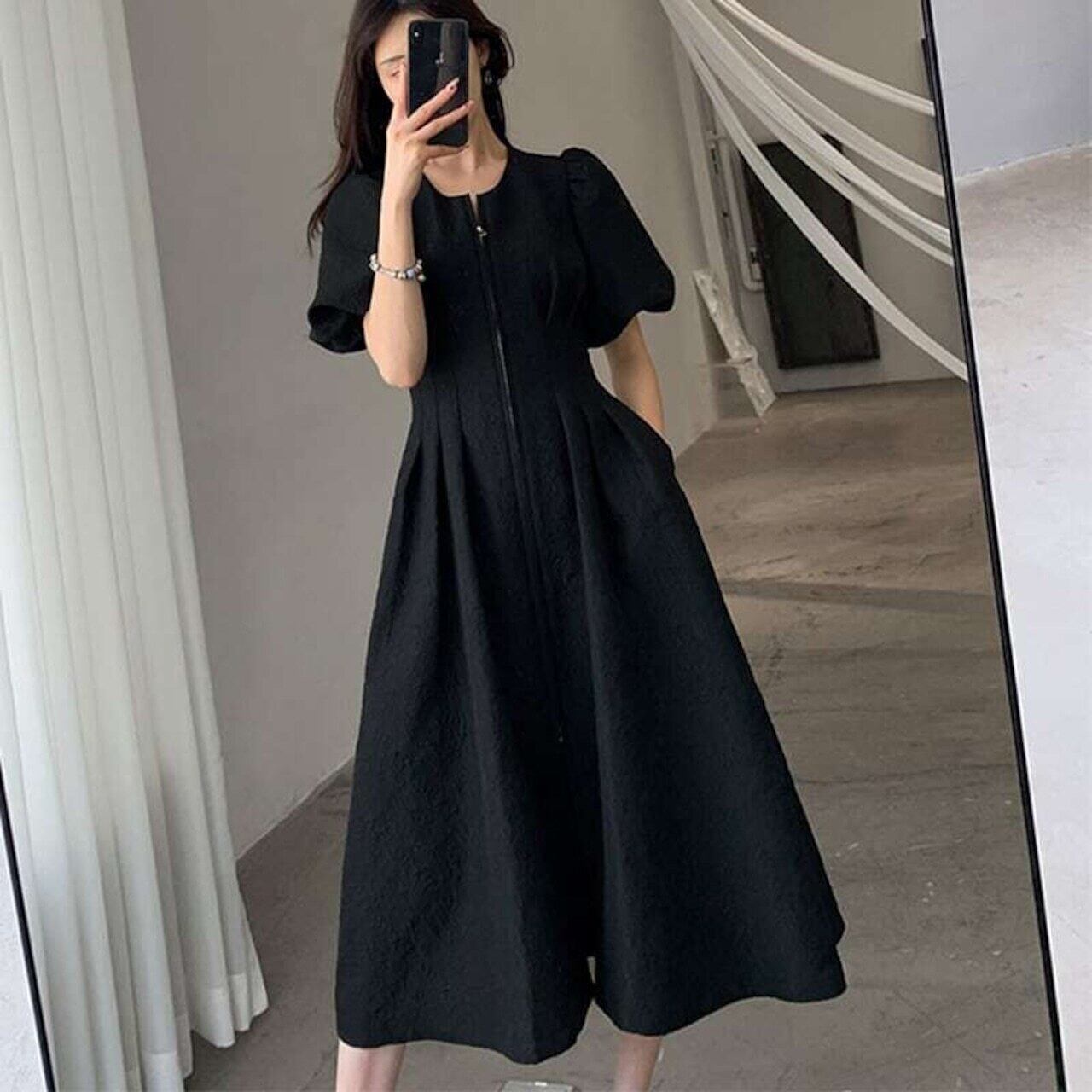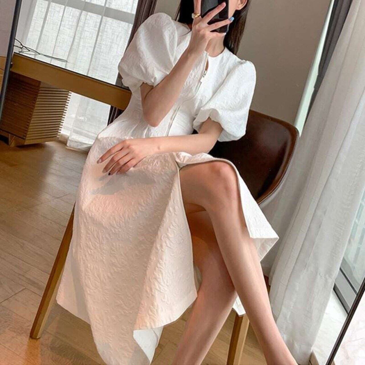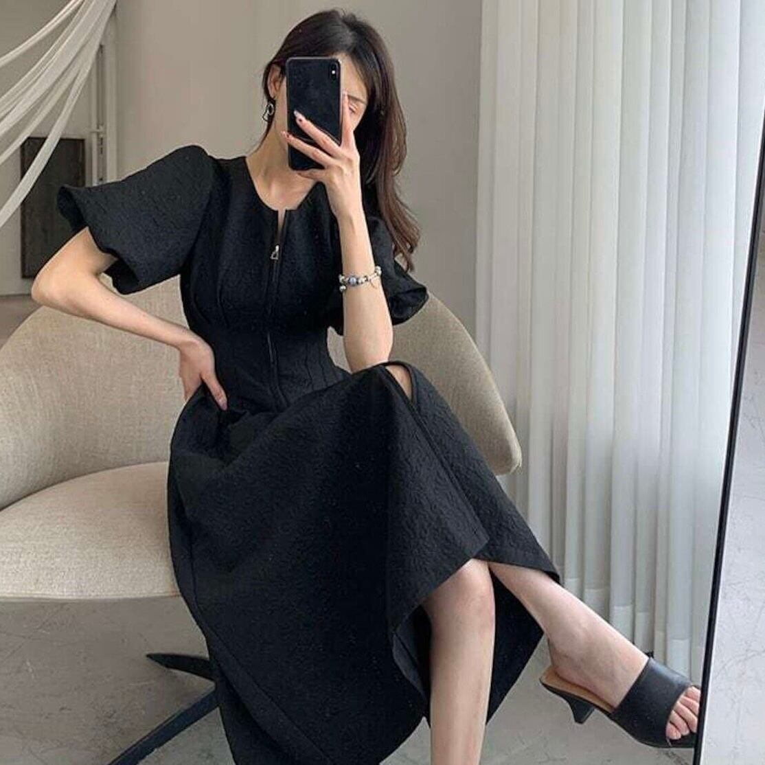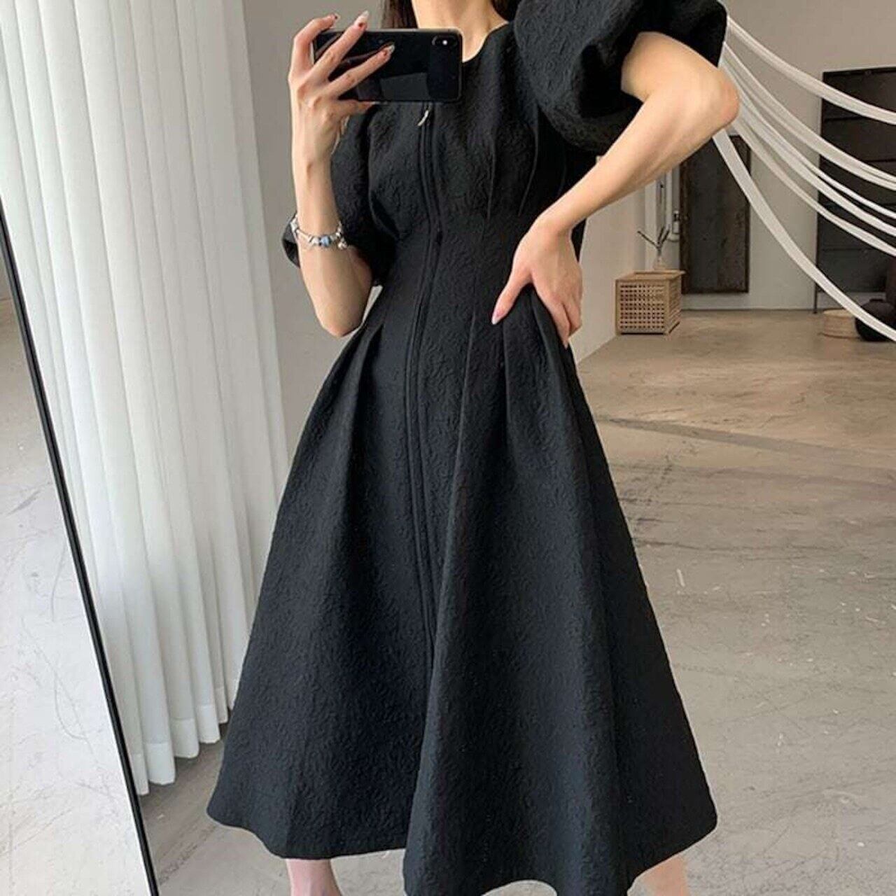 【dress】パフスリーブジャガード柄ジッパーワンピース MM1122