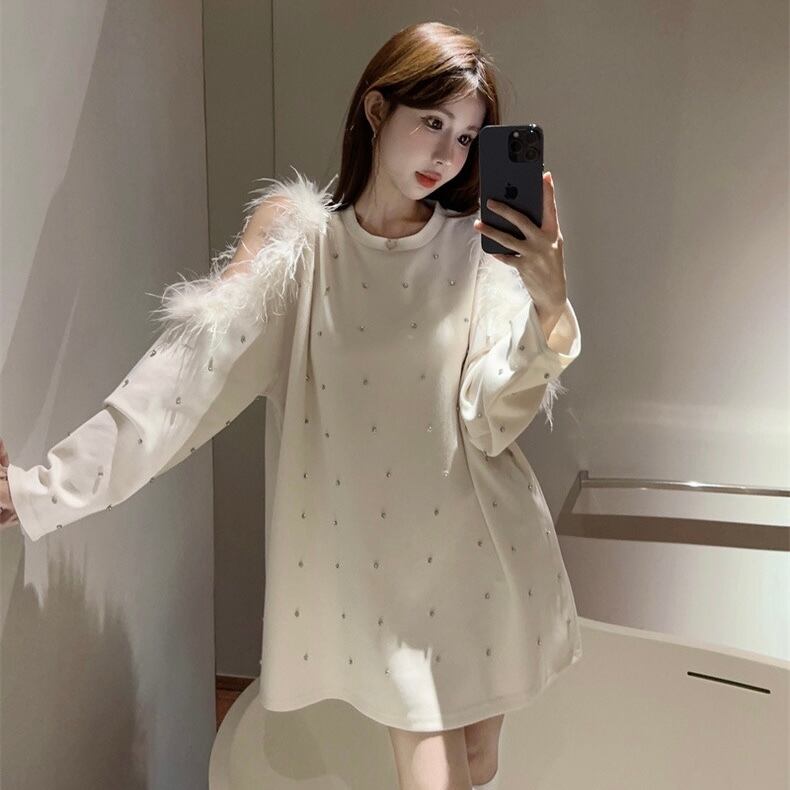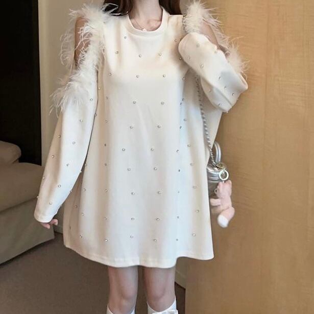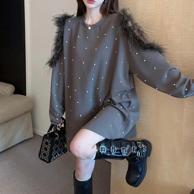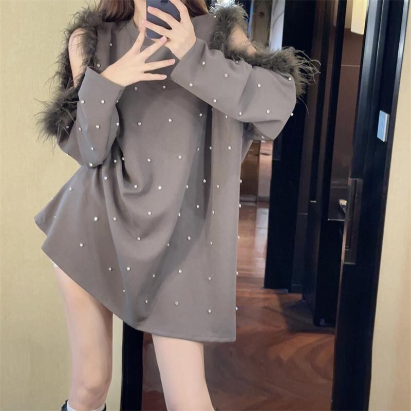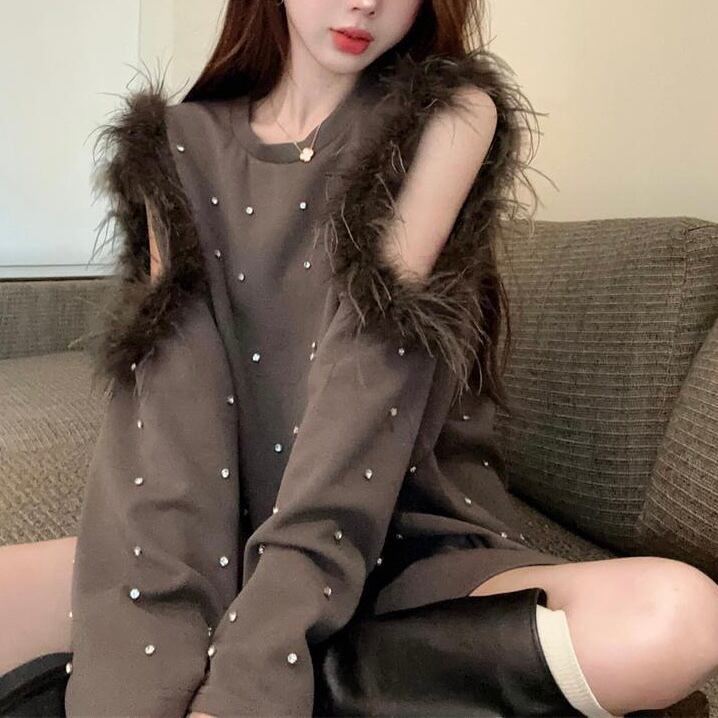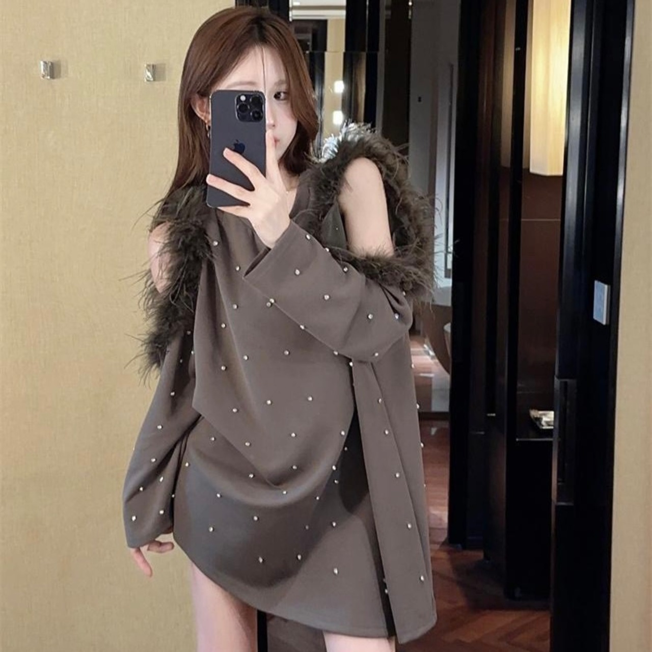 【tops】フェイクファーオープンショルダーミニワンピトップス2色 JY3271