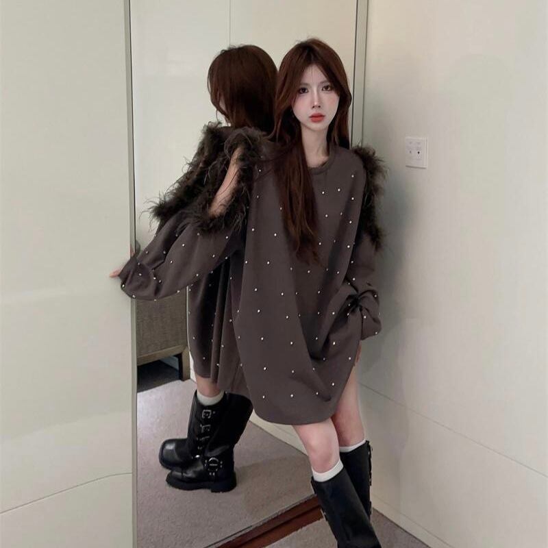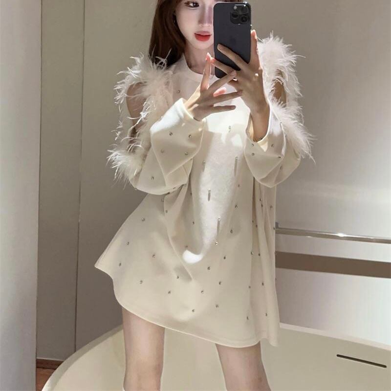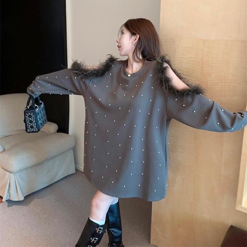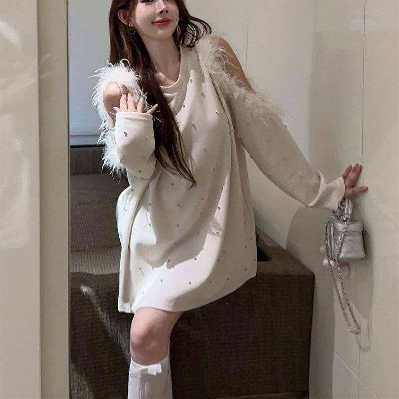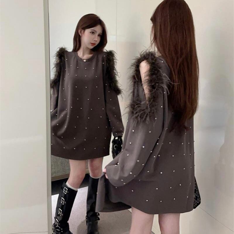 【tops】フェイクファーオープンショルダーミニワンピトップス2色 JY3271