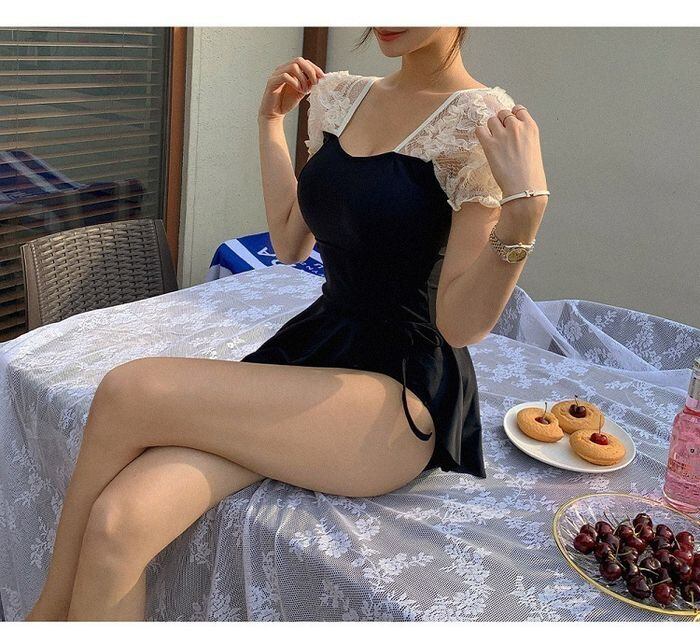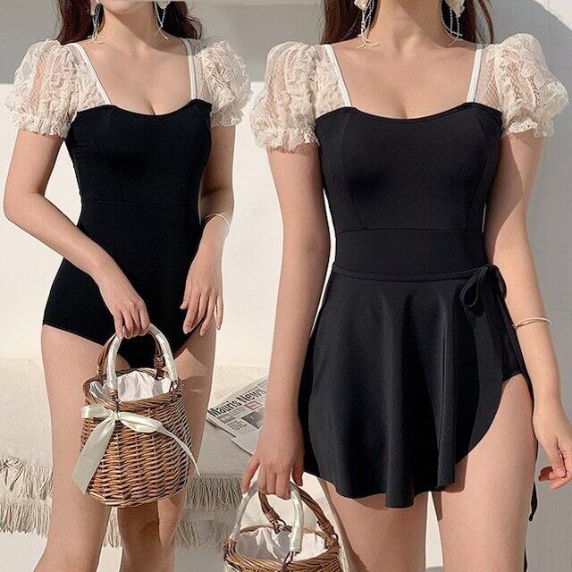 【水着】スカート付きレーススリーブスイムウェア IJ0033