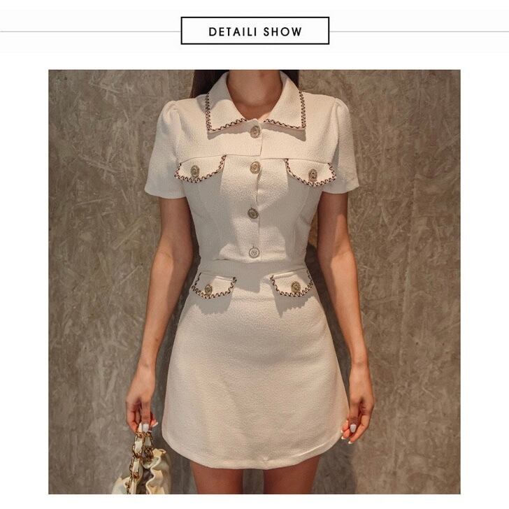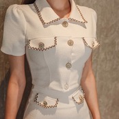 【set】襟付き配色ジャケットxスカート JY4103