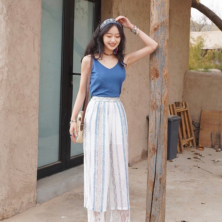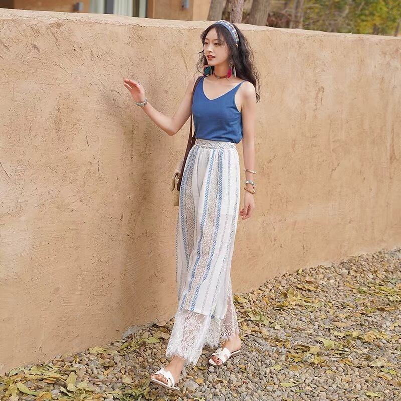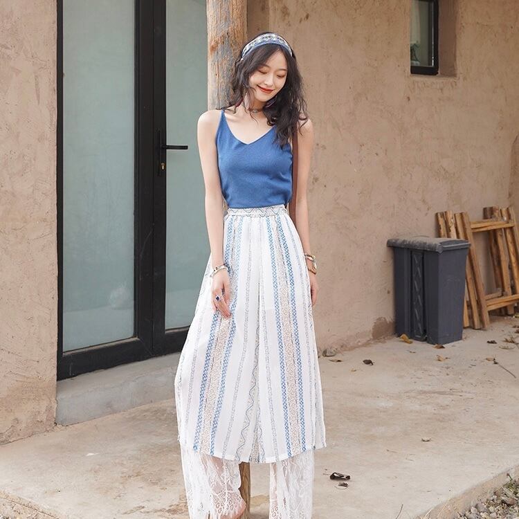 【bottoms】ハイウエストレース切り替えパンツ JY4306