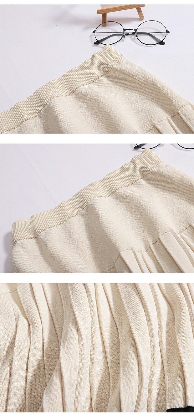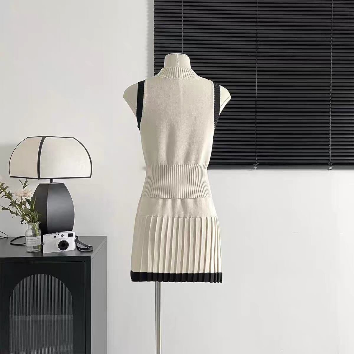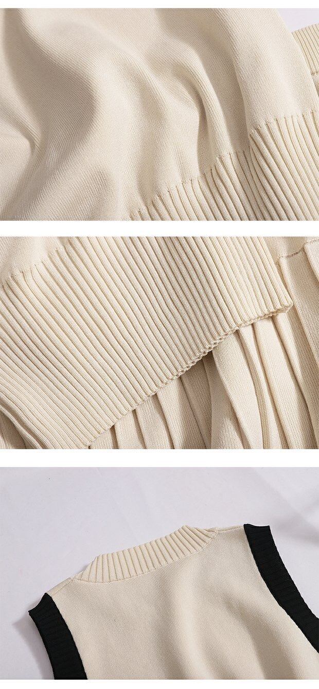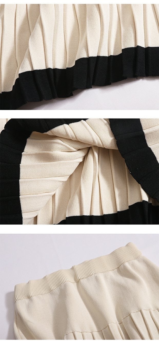 【set】配色ノースリーブトップスxプリーツスカート2色 JY4703