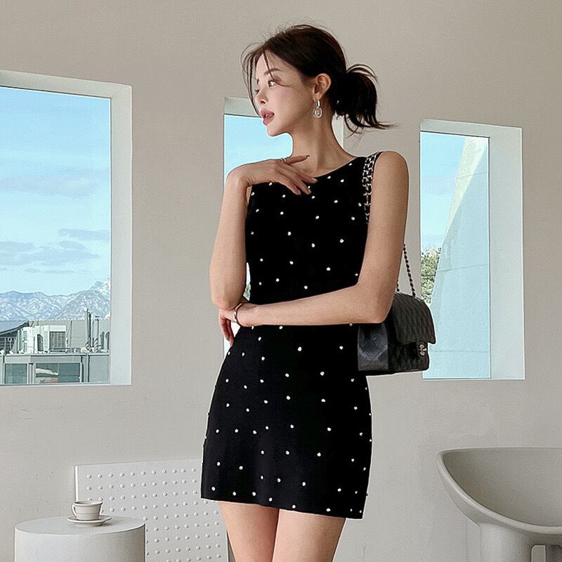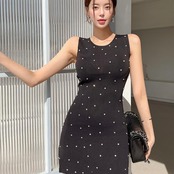 【dress】ラウンドネックノースリーブミニワンピース JY4709