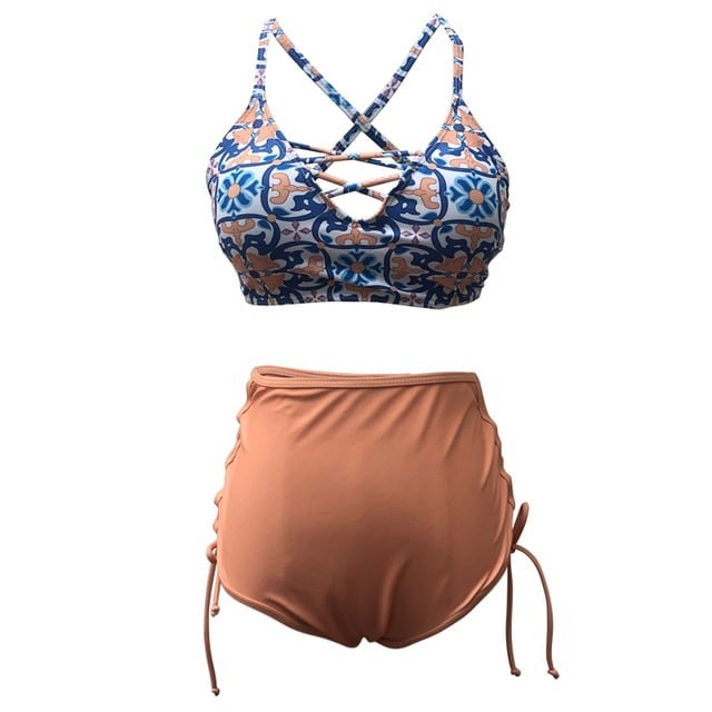 【水着】フラワーレースアップハイウエストビキニ MK0410