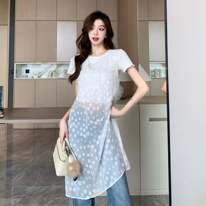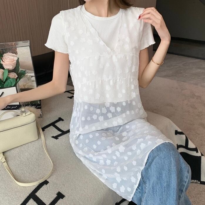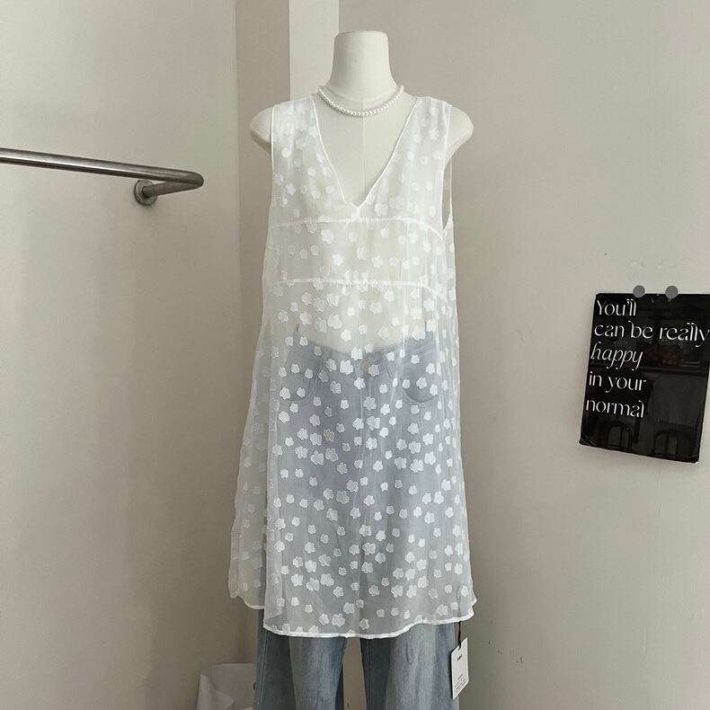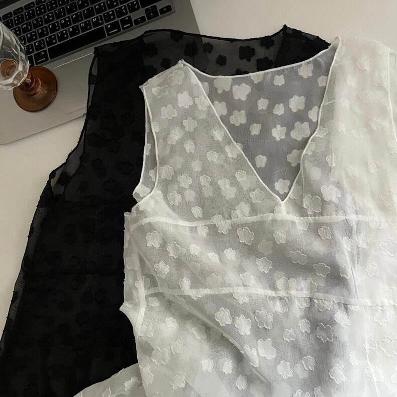 【tops】Vネックノースリーブ重ね着トップス2色 JY4907