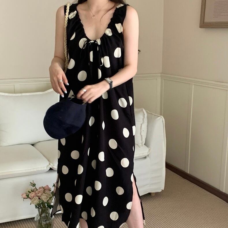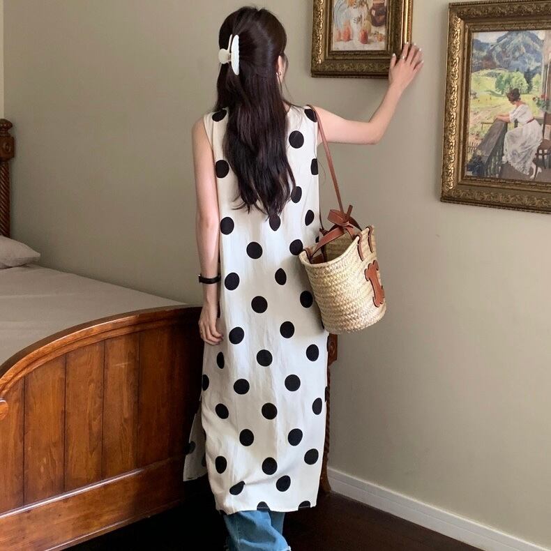 【dress】前後2wayドット柄ノースリーブワンピース JY4917