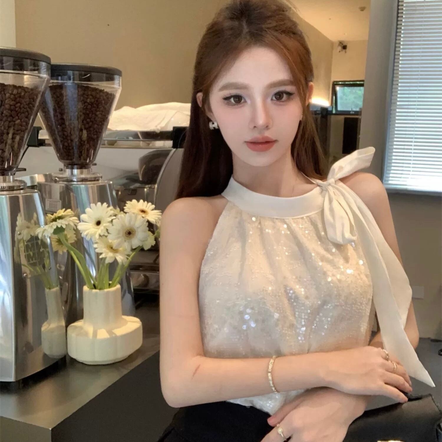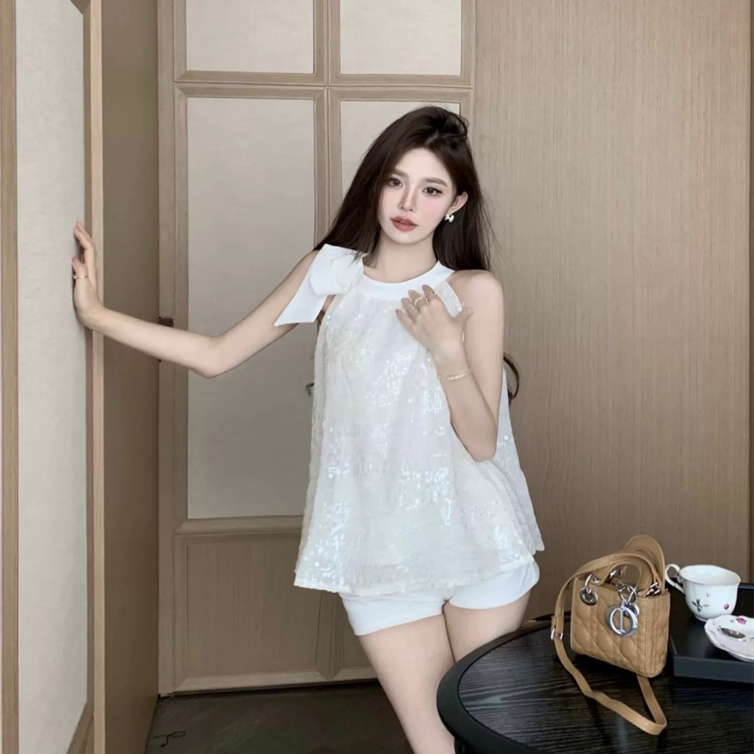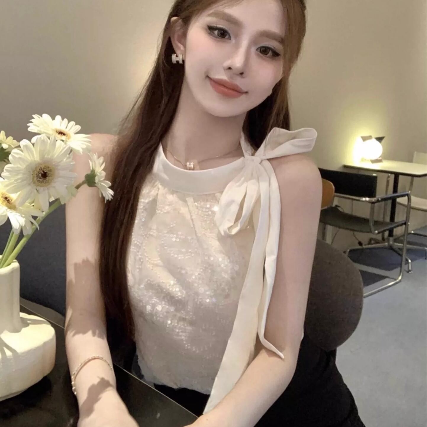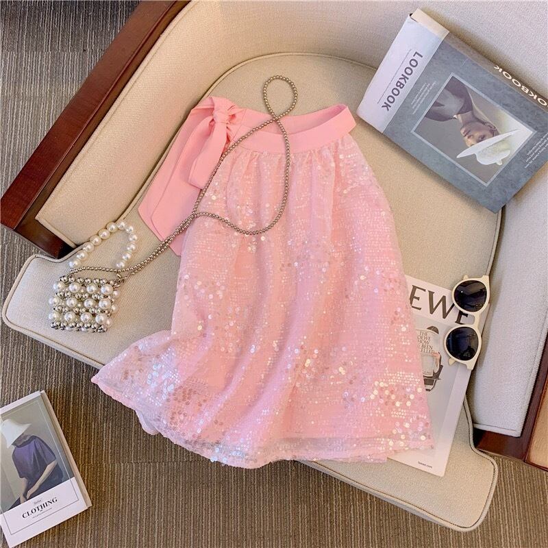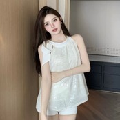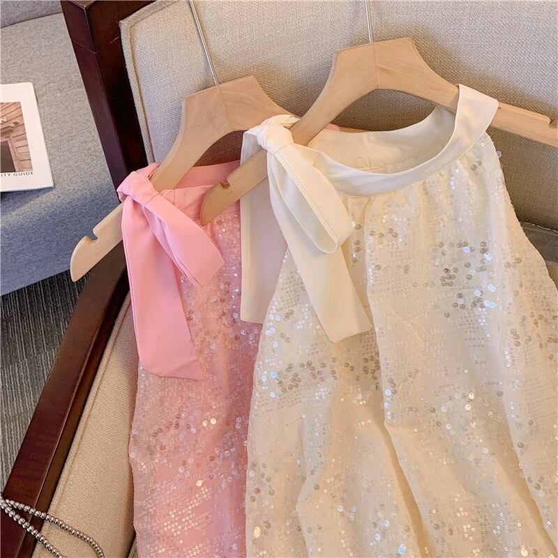 【tops】スパンコールネックリボントップス2色 BT0416