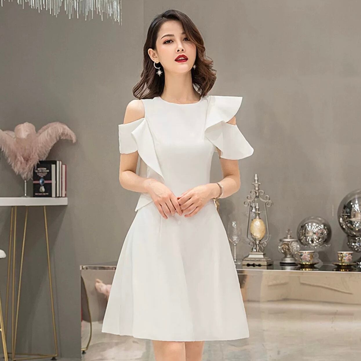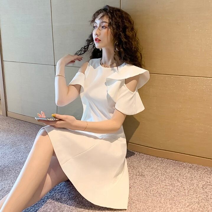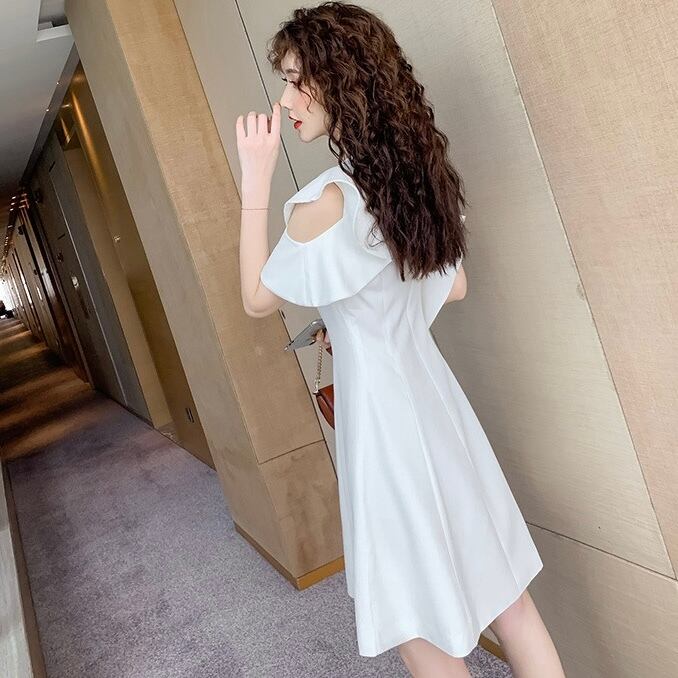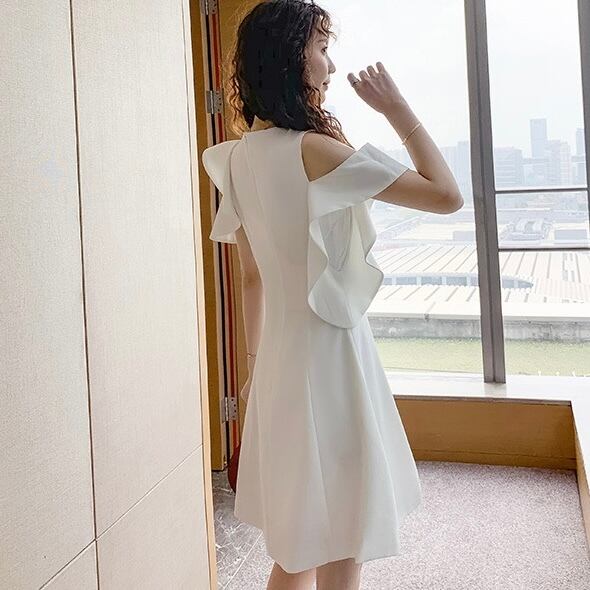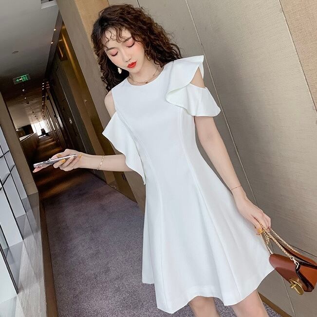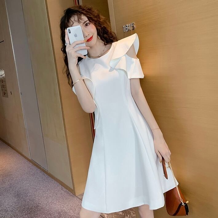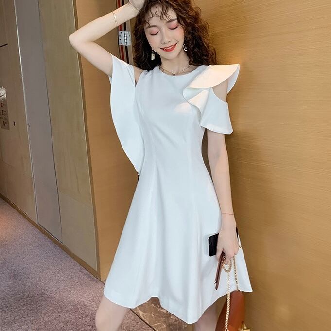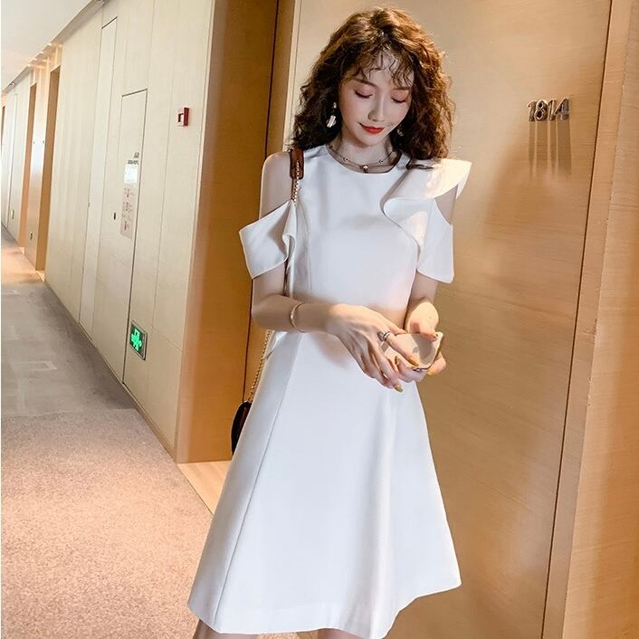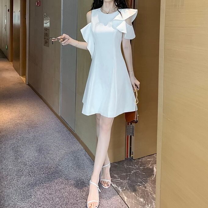 【dress】ショルダーアシンメトリーフレアワンピースBT0417