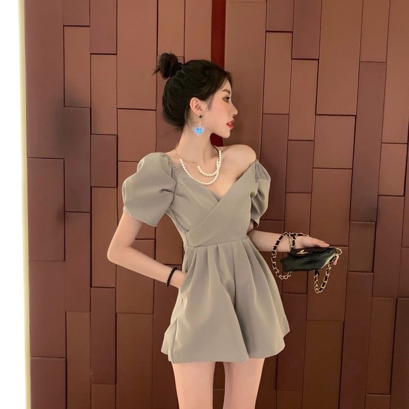 【set】オールインワンパフスリーブキュロット2色 KN0415