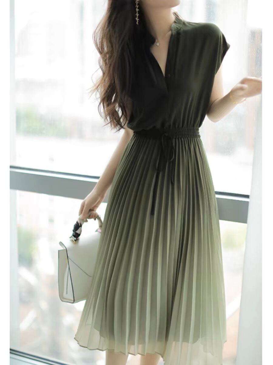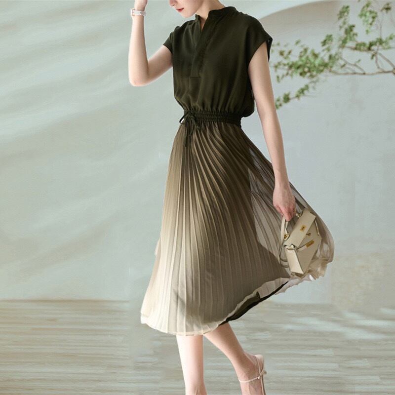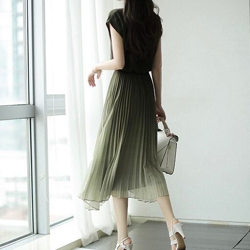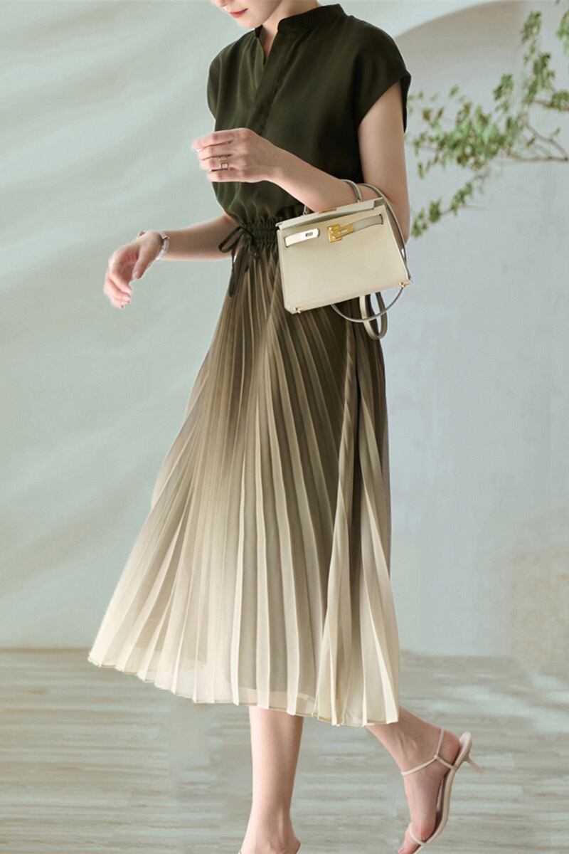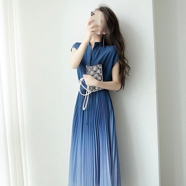 【dress】グラデーションプリーツワンピース2色 JY4156