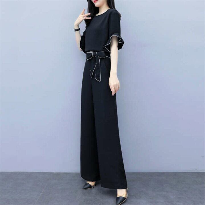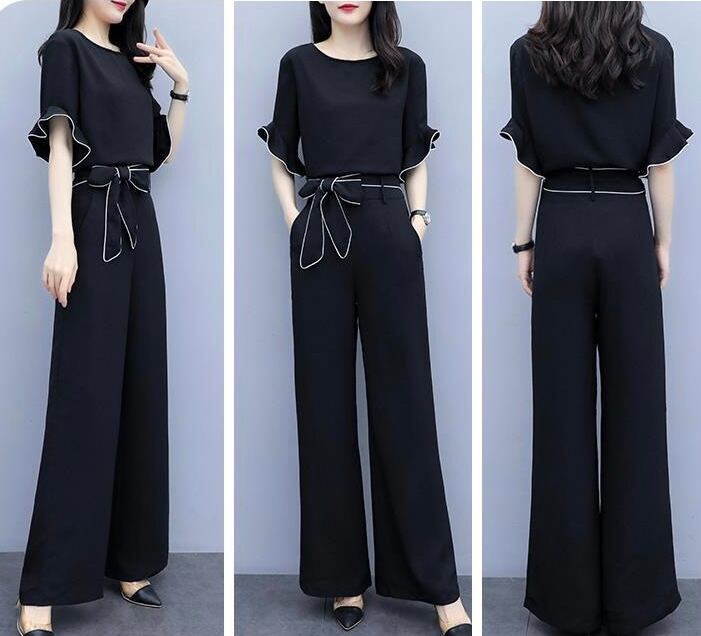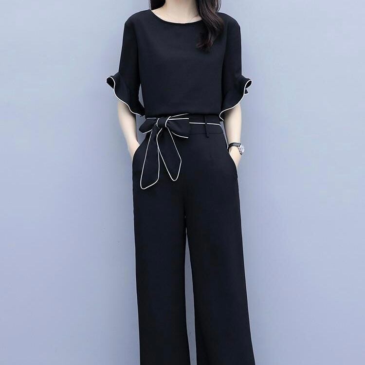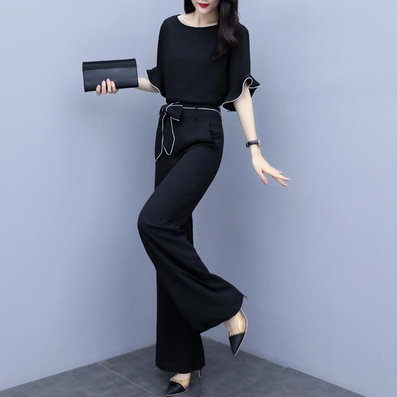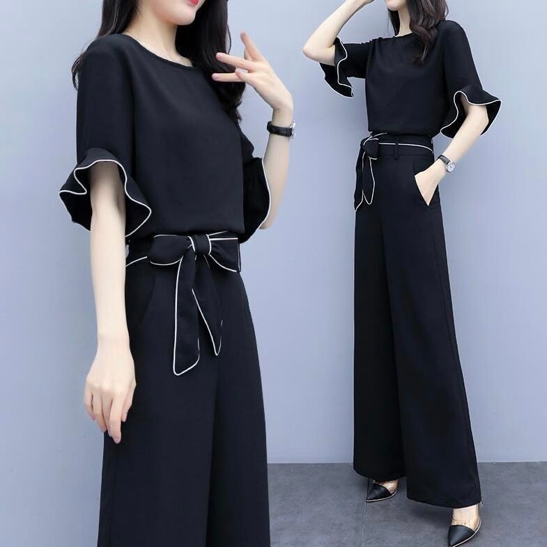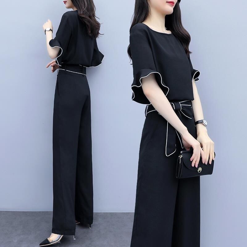 【set】フリルトップスxハイウエストパンツ SY4150