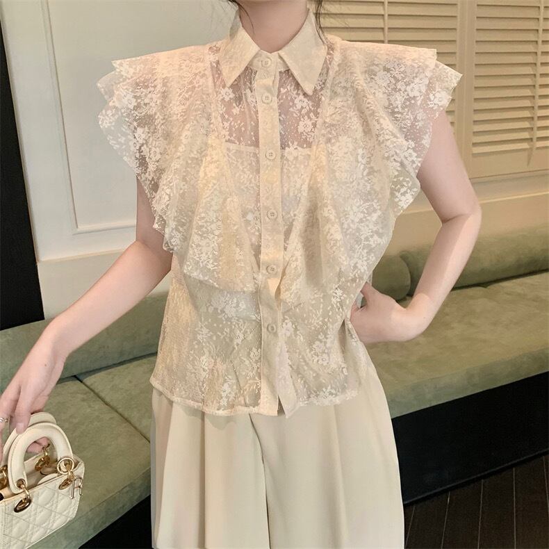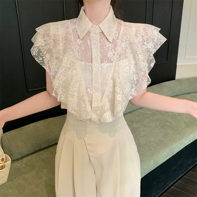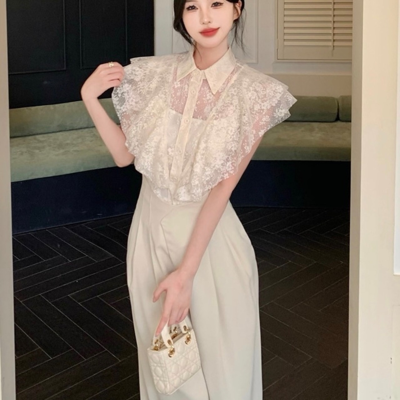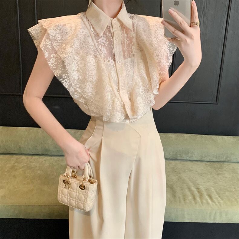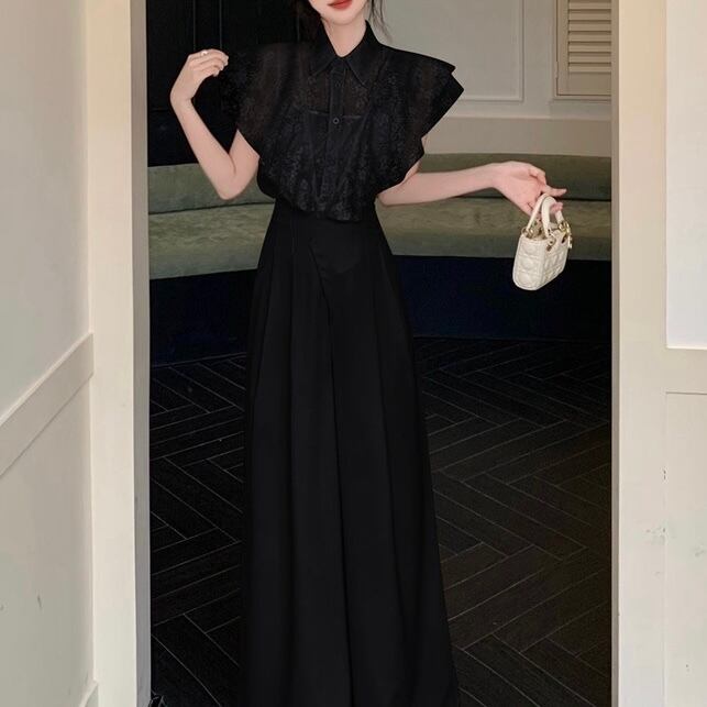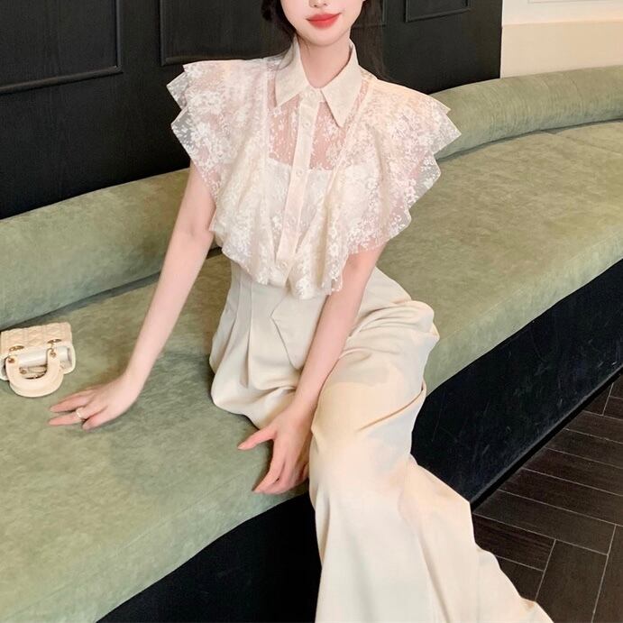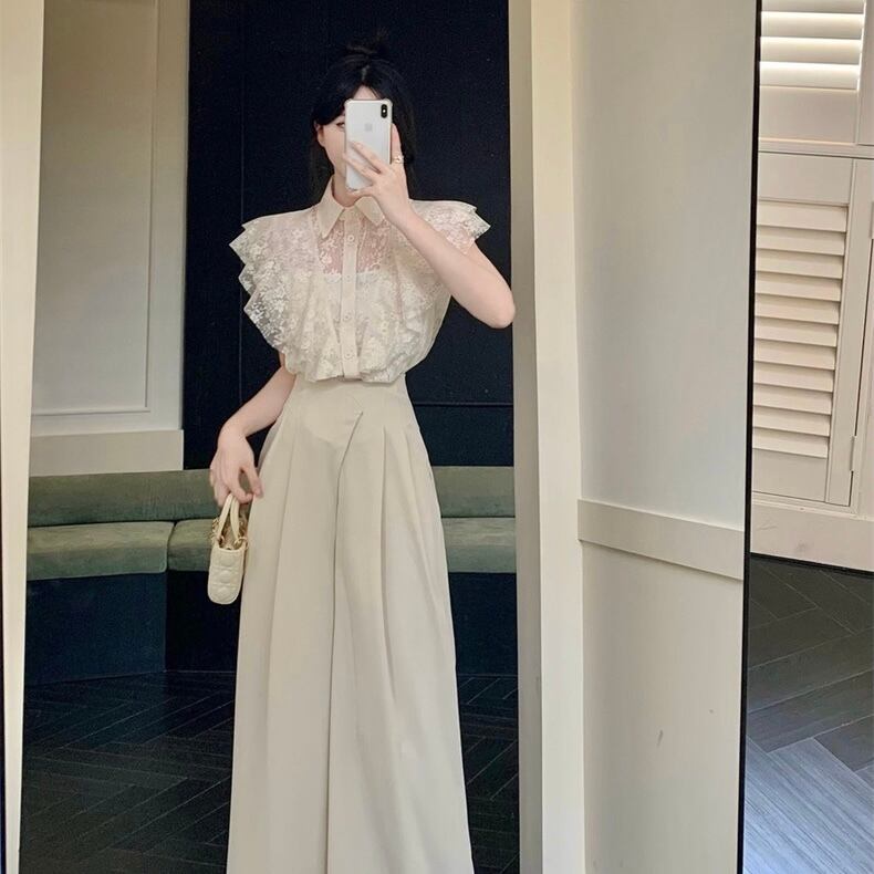 【set】レーストップスxハイウエストワイドパンツ2色 JY4171