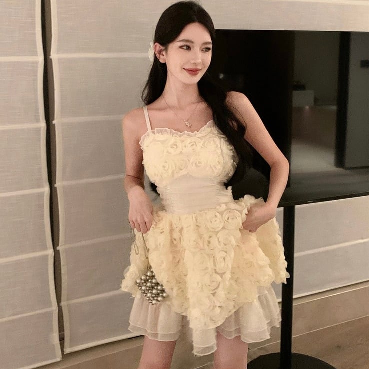 【dress】ローズレース切り替えキャミワンピース XG0419