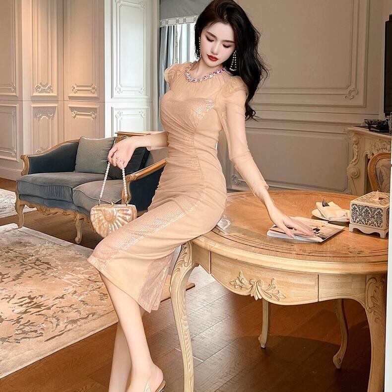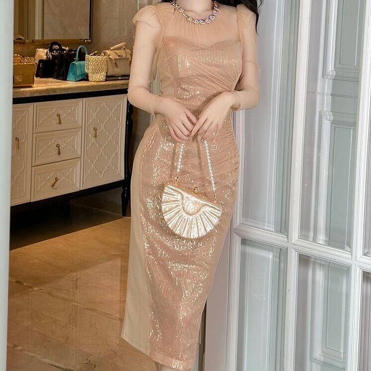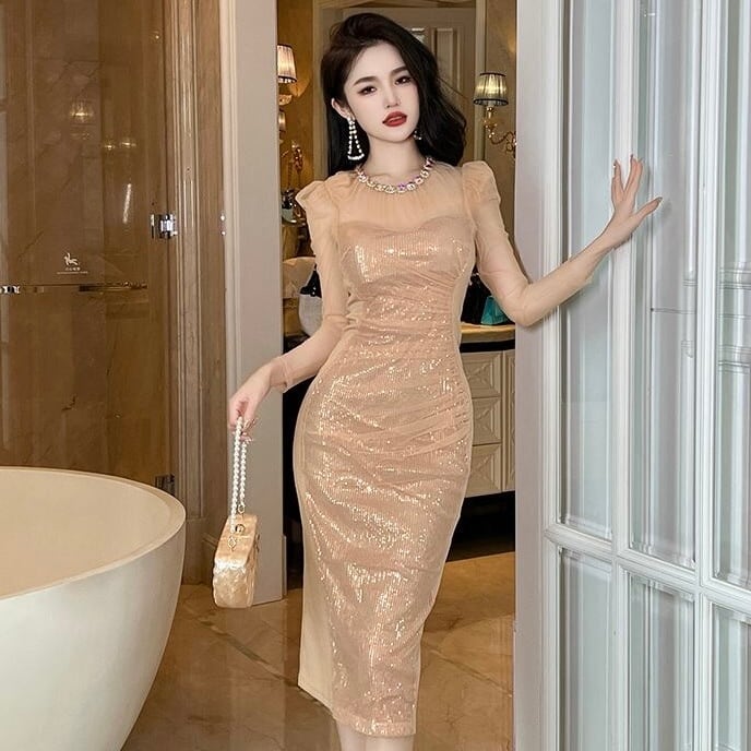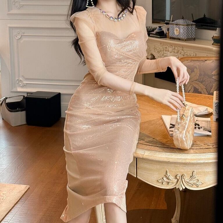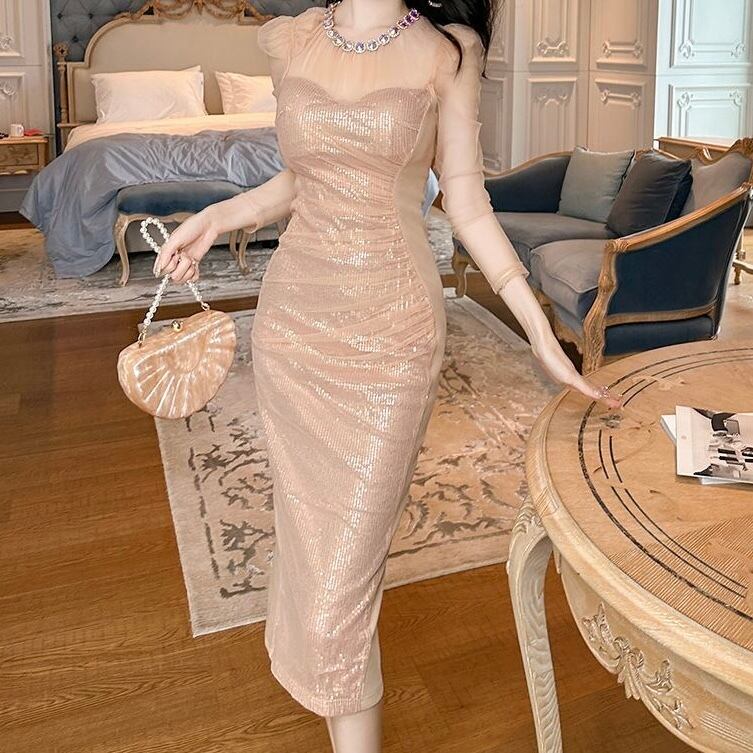 【dress】ビジューネックスパンコールシーアワンピース XG0422