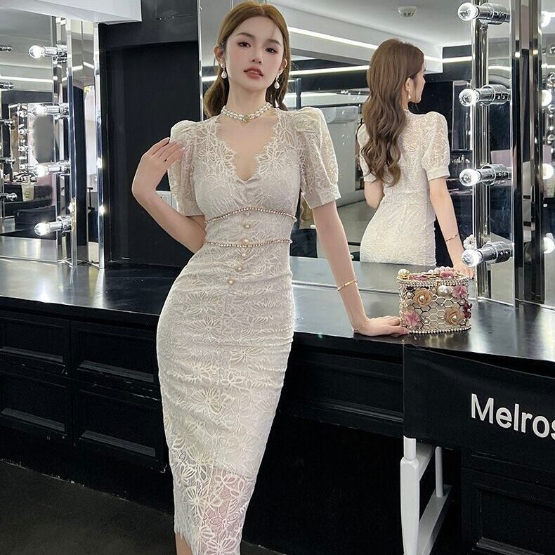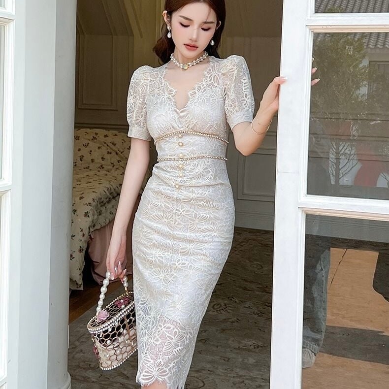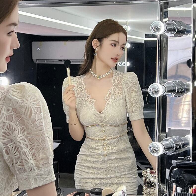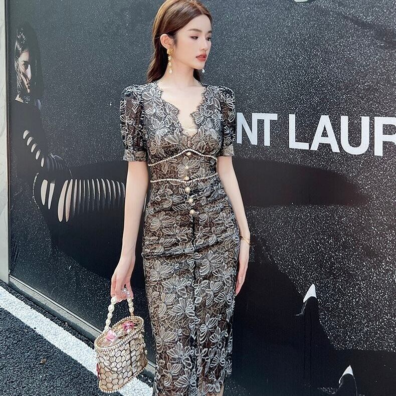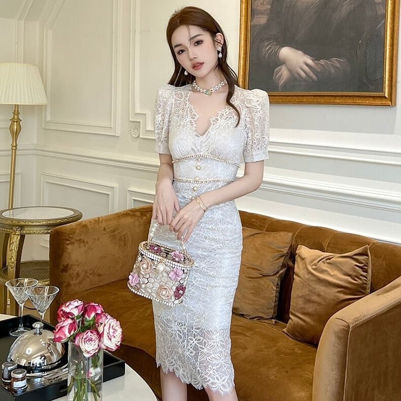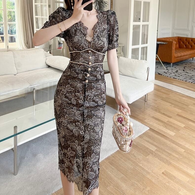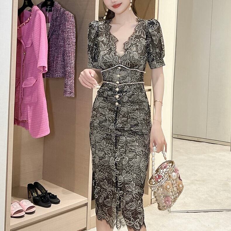 【dress】半袖レース花柄エレガントワンピース XG0423