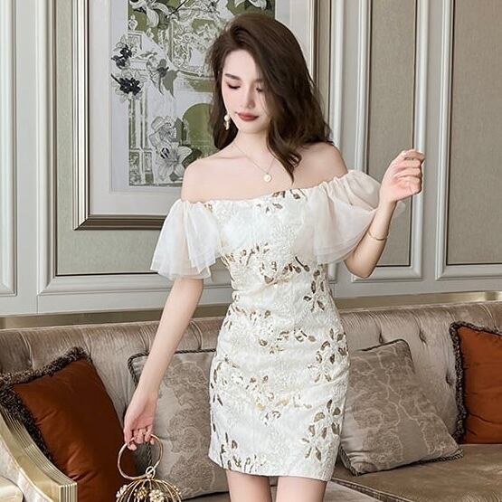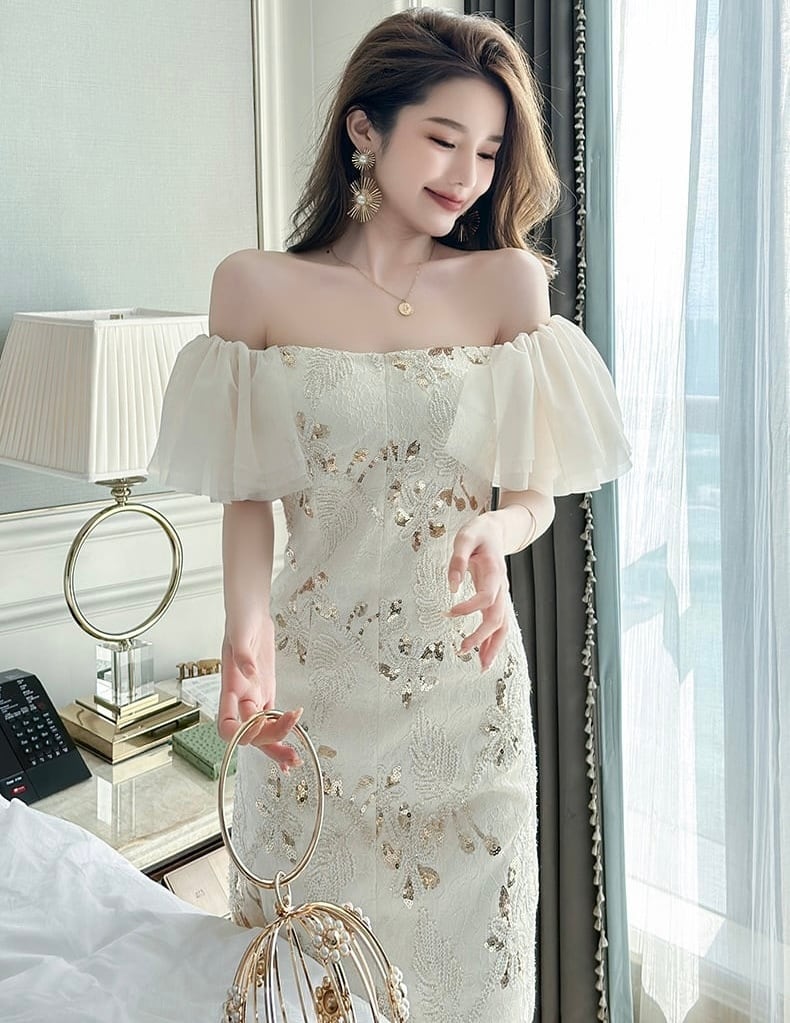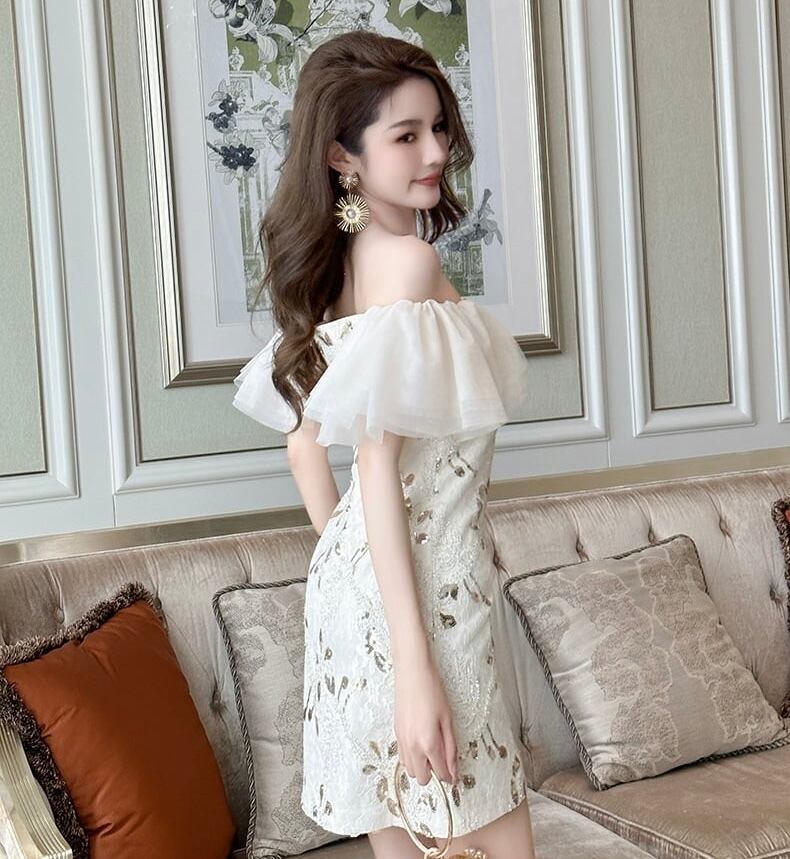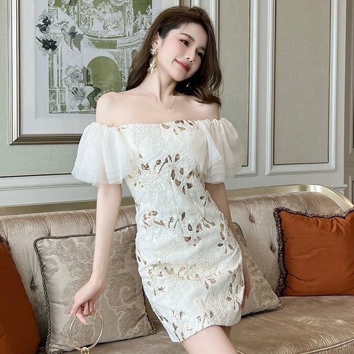 【dress】ボートネックフリルワンピース QW0432